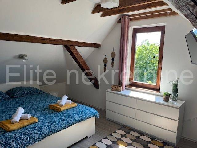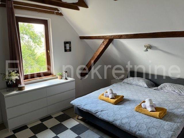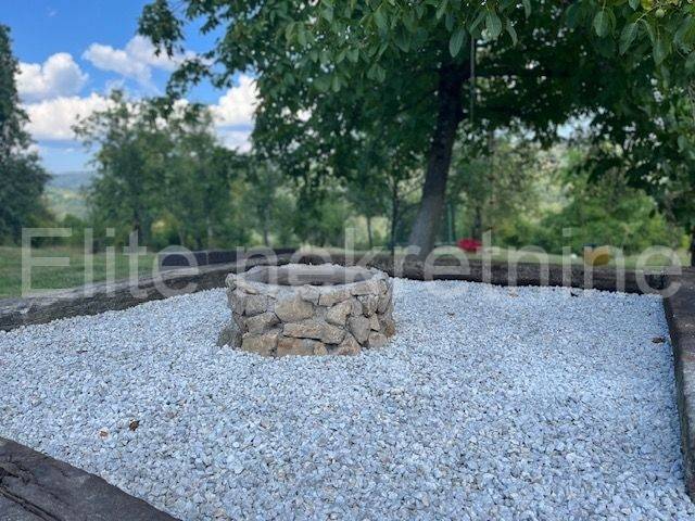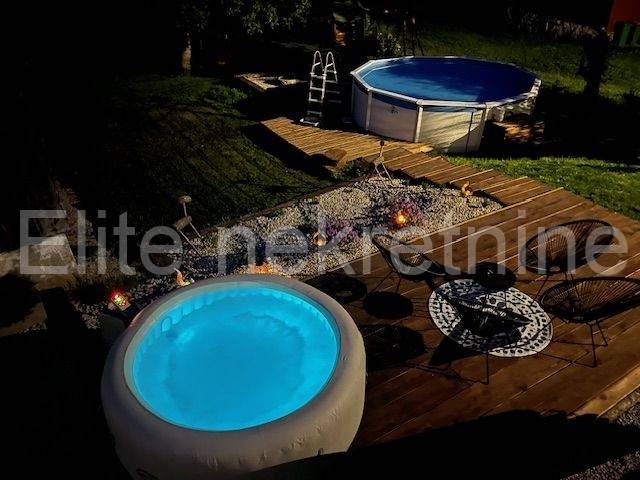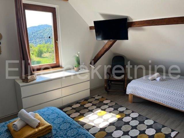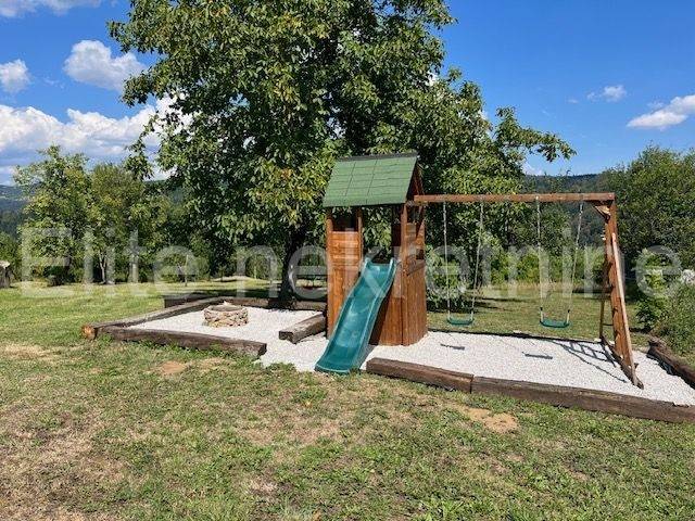 Vebovsko - sale of detached house! For sale is a furnished mountain house surrounded by 7500m2 of land. On the ground floor there is an entrance hall, two bedrooms, a large spacious bathroom and an open living room with a kitchen and a dining room that opens onto a terrace from which you can go directly down to the garden. A beautiful wooden staircase leads to the first floor where there are two bedrooms and a bathroom. In the basement of the house there is a tavern for socializing with a kitchen and a bathroom. There is a prefab swimming pool, a jacuzzi, a sunbathing area and a children's corner with play equipment on the landscaped garden.On the spacious garden there is an economic building that has a use permit, it is possible to convert it and build additional houses. The house is located in a small village that is not on the road at 550m above sea level with a view of the surrounding forest and hills.