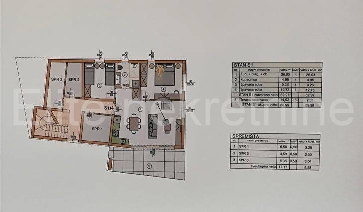 Istria, MEDULIN - quality new building with a garden 300m from the seaAt an attractive location in Medulin, we offer a new project of a smaller urban building with only one residential unit per floor.Each apartment has a terrace, a storage room and a private parking space.Apartment S1 is located on the ground floor and contains: kitchen, dining room and living room, bathroom, 2 bedrooms and a covered terrace, with a total area of 59.98m2 (terrace calculated according to coefficient 0.50) plus a net storage area of 6.50m2 (calculated according coefficient 0.50).Belonging garden of 166m2.A pleasant, urban location, but also quite a quiet location; at the same time, the proximity to the center, and on the other side, only 300m away, is the sea and the Medulin waterfront, which, especially in the summer, is a place for socializing and gathering with a whole series of events and colorful entertainment, making this exclusive property ideal for a stay!For more information, reservation and implementation of this great offer, feel free to contact us!Direct contact with the agent:Jadranka K. ǀ Mobile: 091 250 2851 ǀ E-mail:jadranka.elite@gmail.com