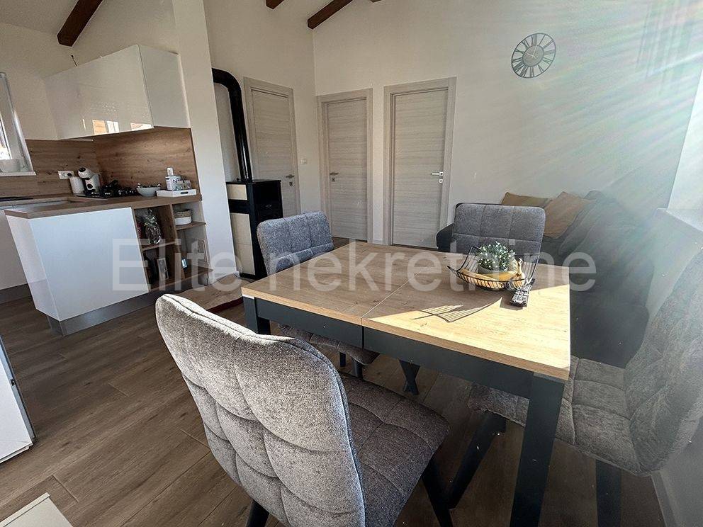 Loborika - modern one-story house of 50m2 with a large covered terrace. Loborika is a small town only 7 kilometers from Pula. It is increasingly popular for the construction of family houses or holiday villas separated from tourist crowds and noise. For people who want to live in nature and peace and be close to a city that offers all urban facilities, Loborika could be the right answer. For sale is a house of 50 m2 with a garden of 653 m2 and a building permit for the construction of another house of 120 m2 and a swimming pool in the yard. This one-story house has two bedrooms, one larger room that conveniently combines the kitchen, dining room and living room.From this room you can access a large covered terrace, which is perfect for spending the summer outdoorsnext to the house is a nicely decorated area with a barbecue and a fenced yard with two parking spaces.Heating is air conditioning and a wood stove. The house was built to a high standard and quality materials were used. All documentation is in order and the property is clean.The house is sold furnished. Direct contact with the agent: Romana S. | Mob. 091 4884 658 | Email: romana_eliteestate@outlook.com