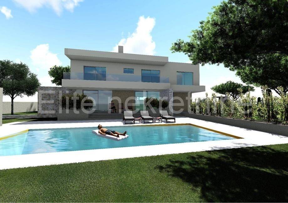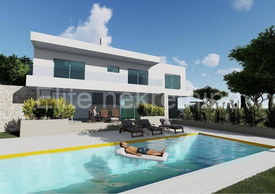 A modern house with a flat roof of 208 square meters is located in a small village between Bal and Svetvinčent.