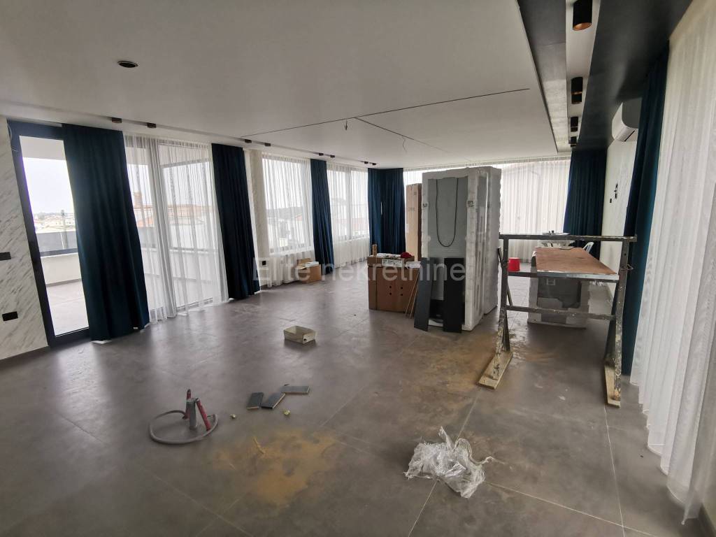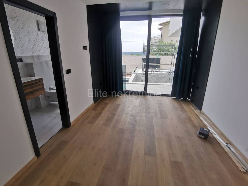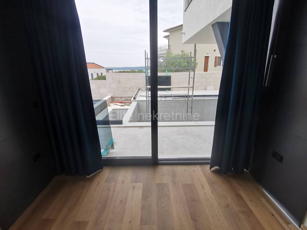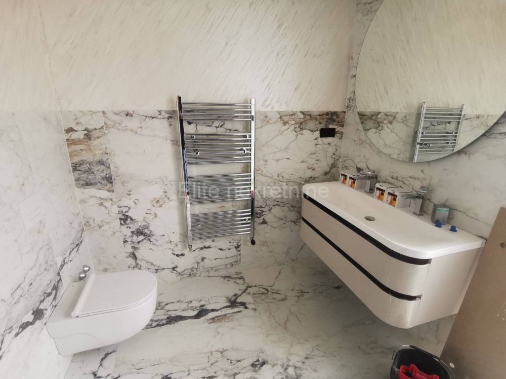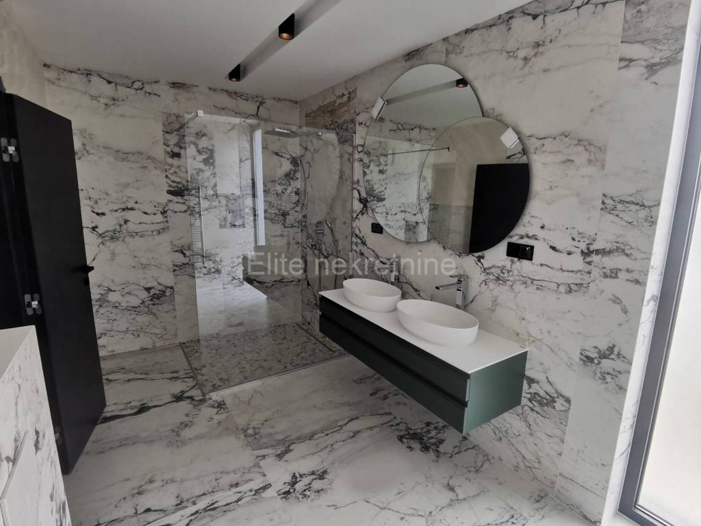 On the second floor is the master bedroom with a spacious bathroom equipped with carefully selected and quality equipment.From this room you can access a large terrace with a beautiful view of the sea, the rugged coast and the whole of Medulin.Right next to it is a room with a sauna, hydromassage tub, several training machines and a shower cabin. It also leads to a large terrace.