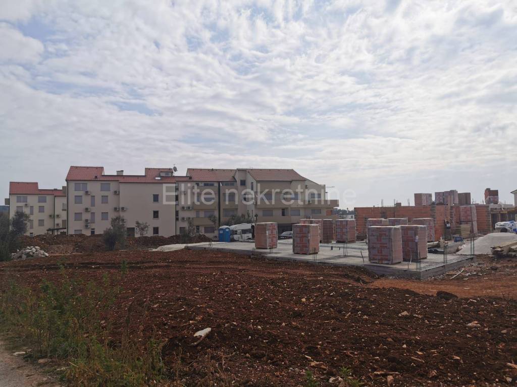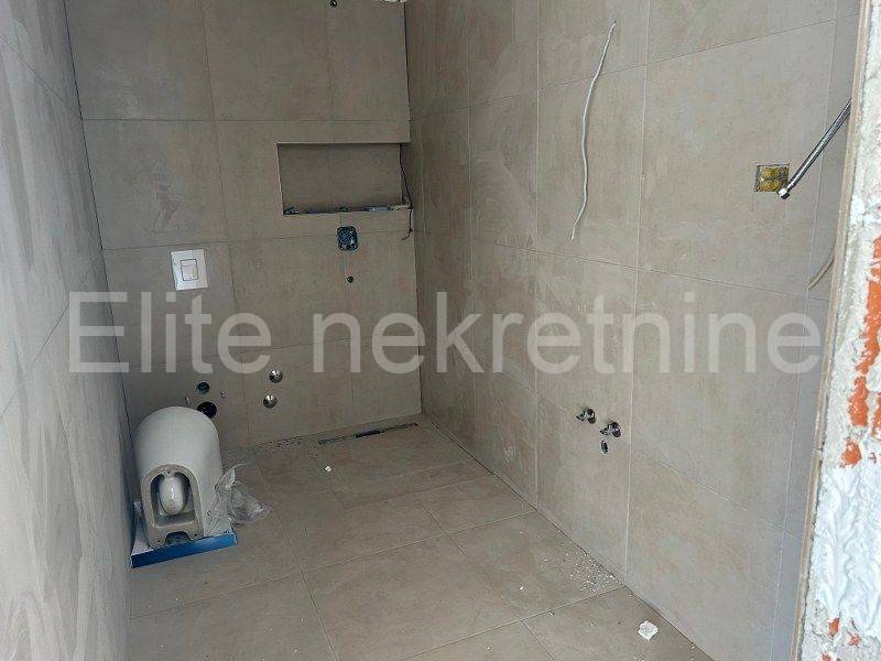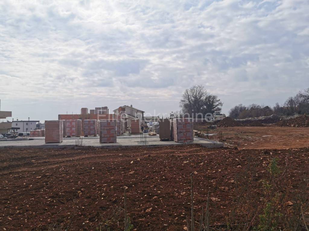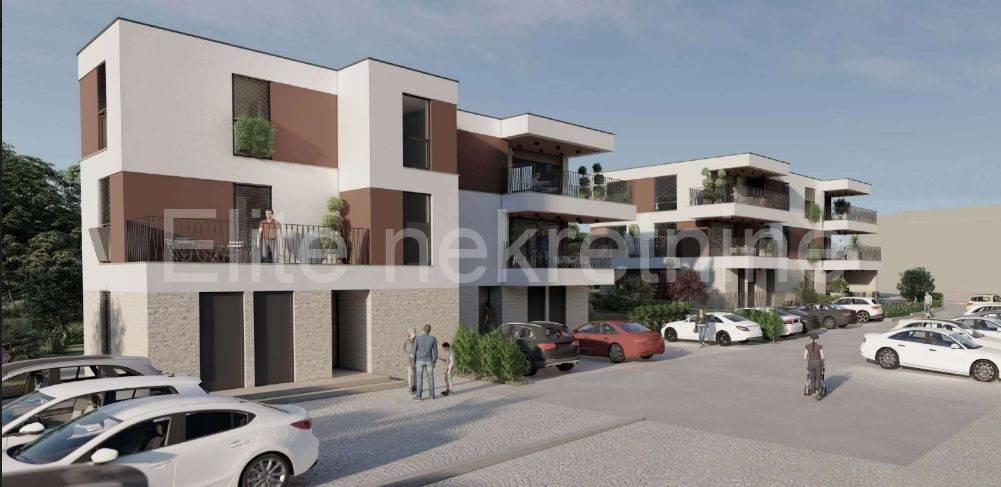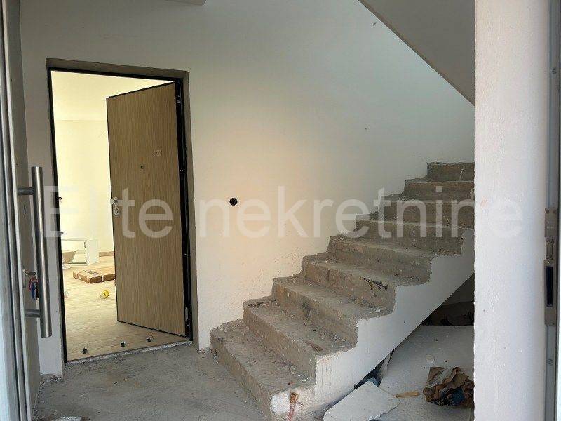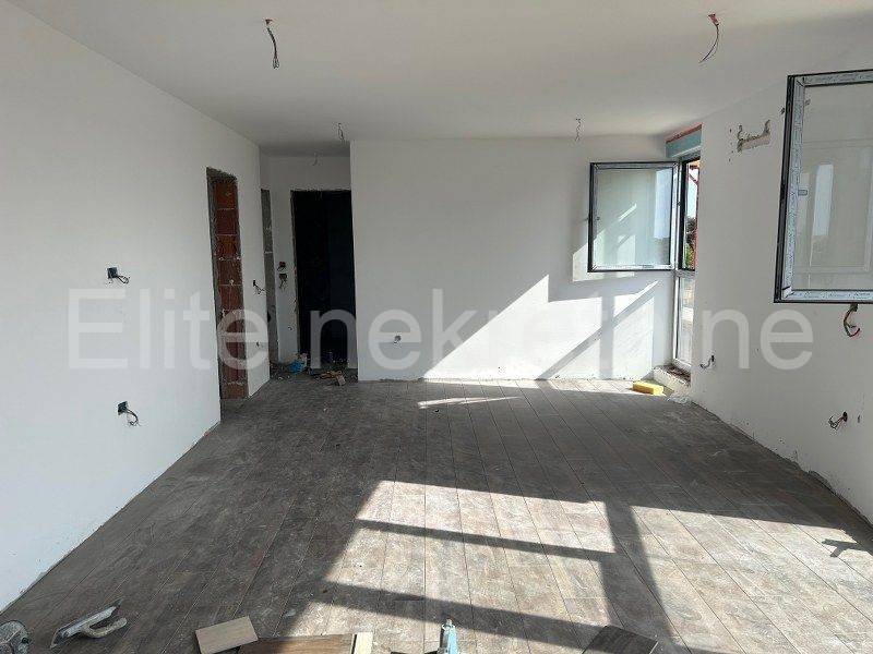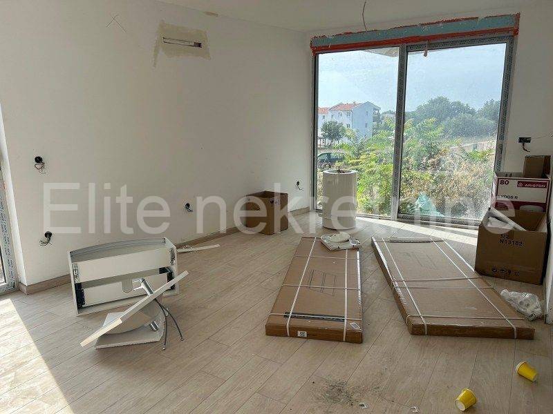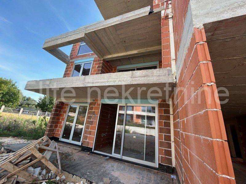 An apartment under construction in a building with three apartments is for sale, located on the ground floor of the building. The apartment has a living area of 79.17 m2 and consists of a hallway, bathroom, two bedrooms, kitchen with living room and dining room,The apartment has access to the garden of 10.58 m2 and a covered terrace of 6.63 m2.It also has a parking space. It is located in a quiet part of the country and the air distance is 900m to the sea.