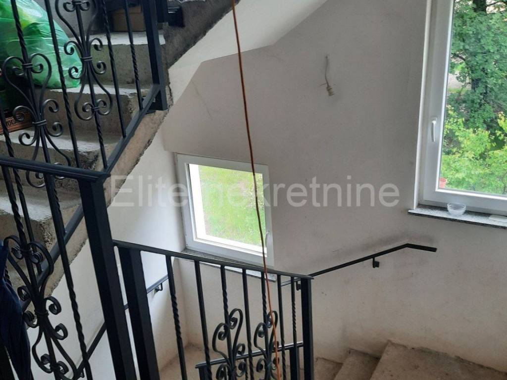 In a quiet area, surrounded by greenery, a detached house of 484 m2 is for sale. The house is spread over 4 floors, ie ground floor, first and second floor and attic with gallery. The house is partially finished, all installations have been completed, heating is central to the heat pump. On the ground floor there is an apartment and a garage. On the first floor there is a two bedroom apartment with a living room, fully furnished and ready to move in. The second floor and the attic with the gallery are in an unfinished condition, and finishing works are needed.