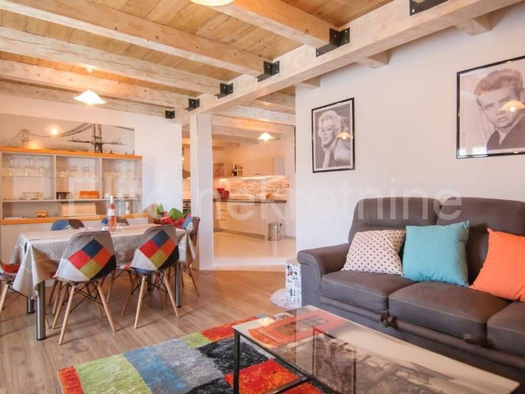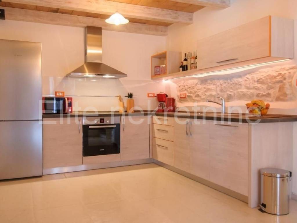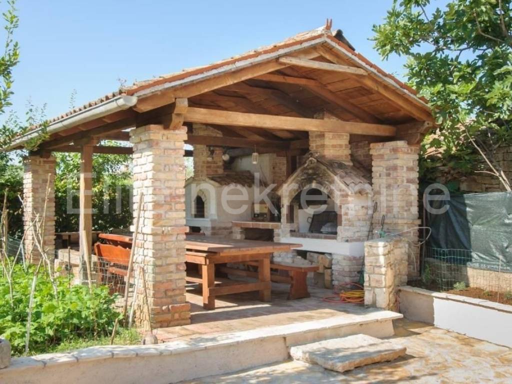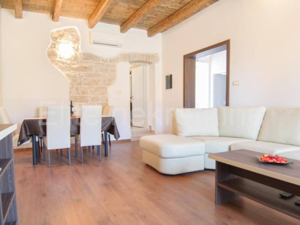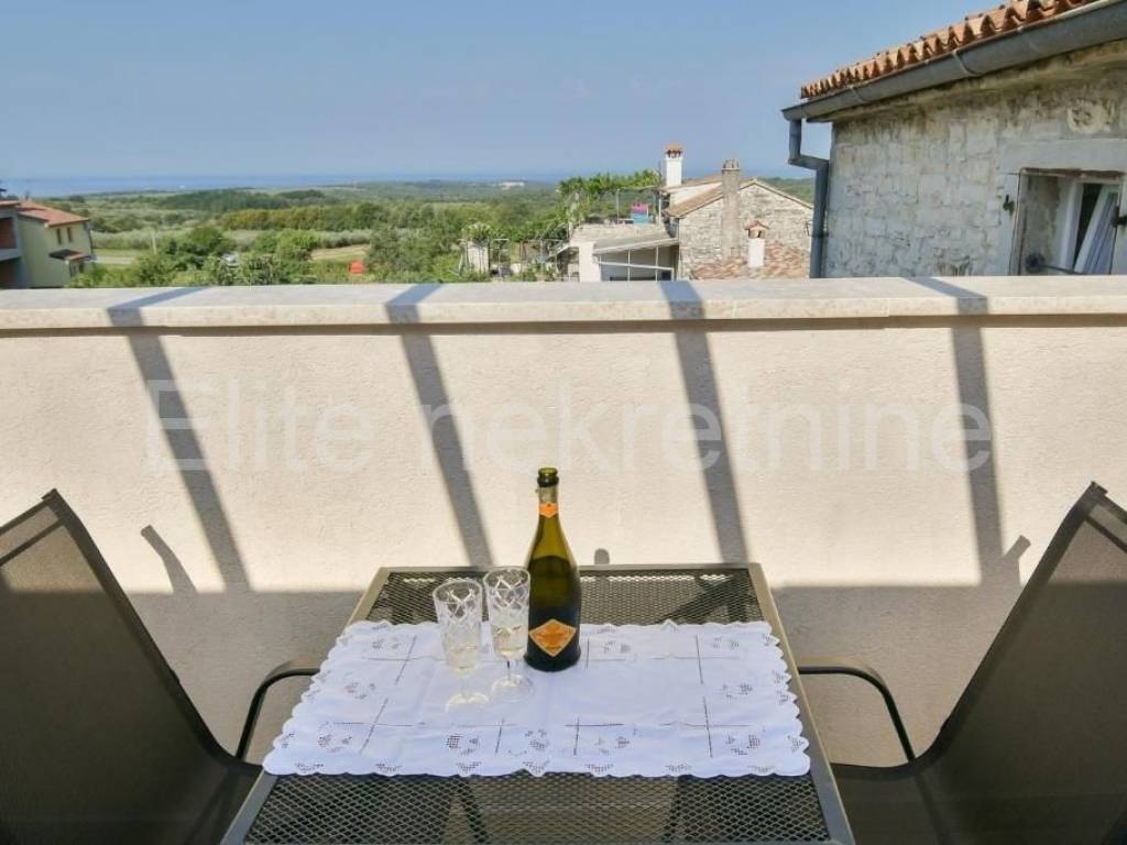 Not far from the town of Porec, at a distance of 1.5 kilometers from the first beaches, this Istrian house with a sea view is for sale.