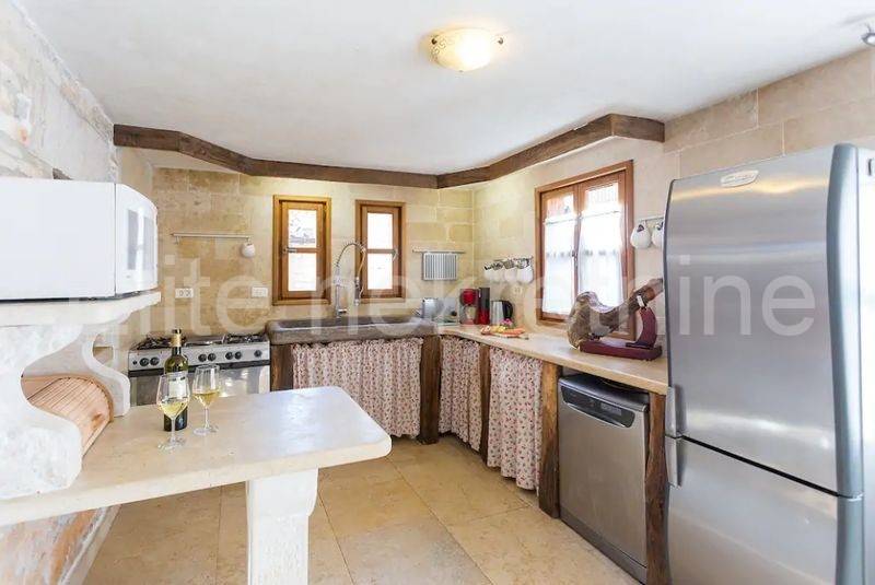 Villom se protežu kameni podovi te kameni umivaonik sa bakrenom slavinom, a upravo su ti ručno rađeni kameni detalji ville, ono što je čini unikatnom.