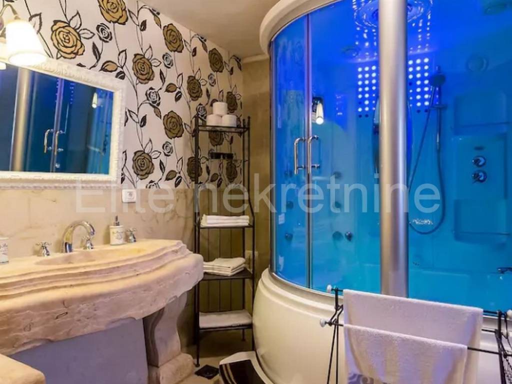 Naglasak je stavljen na originalnost prostora naime od kamena i drva proizveli su samo kuhinju, ormare, umiovaonike, stolove, klupe, podove, kreveta i drugo.