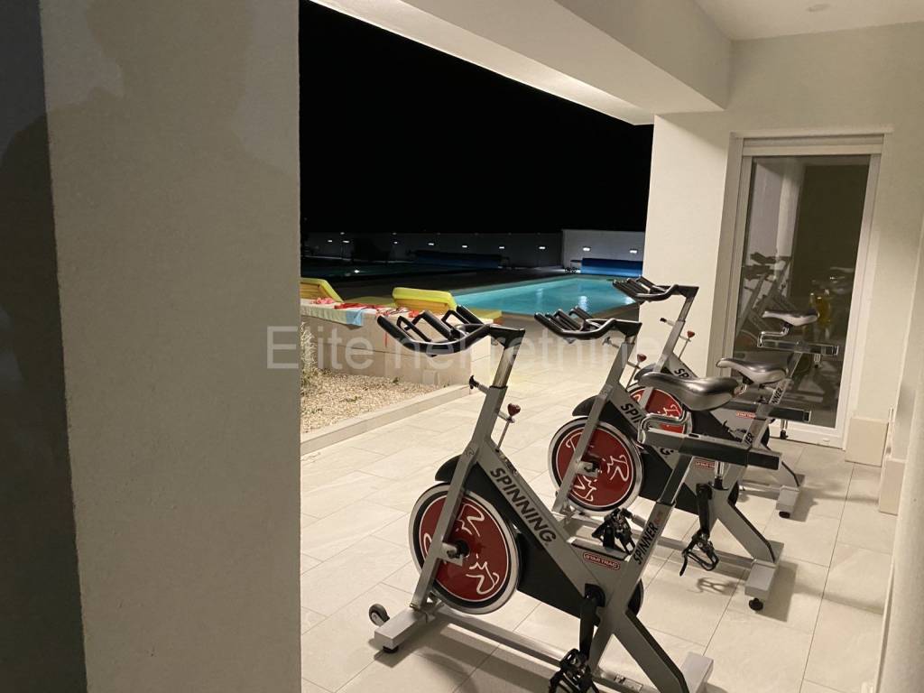 The pool has heating, counter-current and massage.