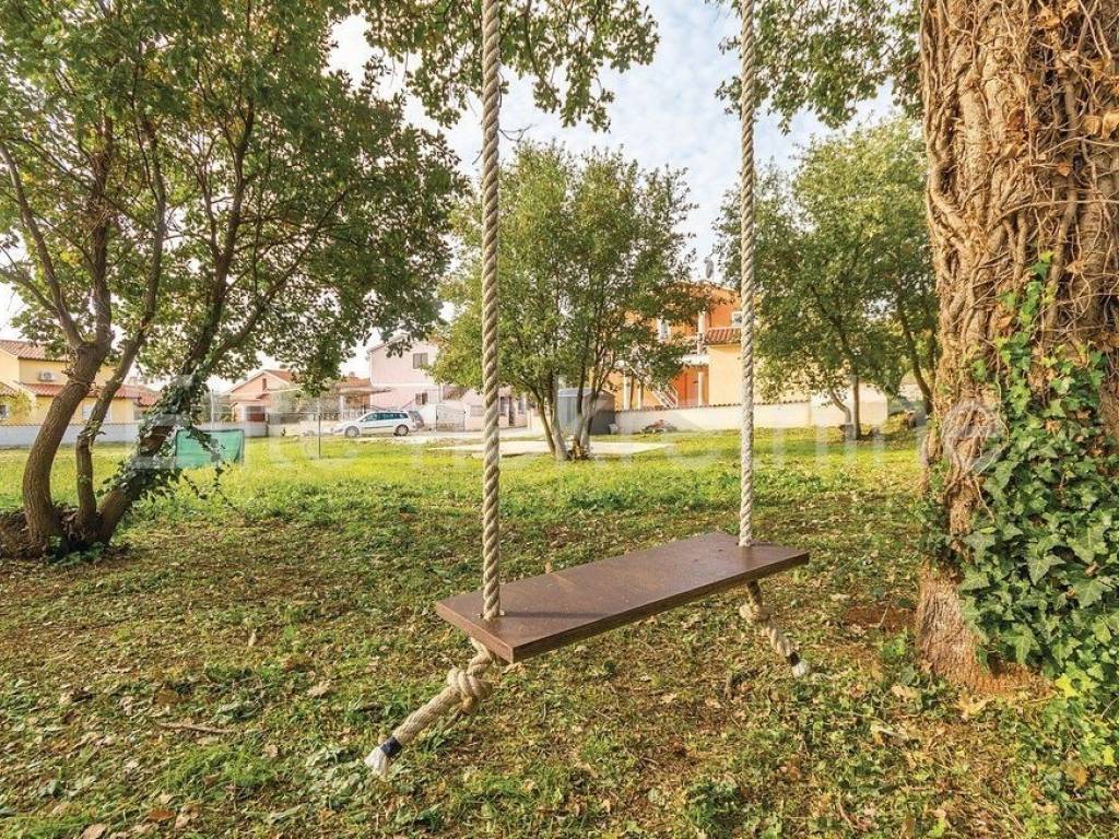 Next to the house there is also a common area for recreation with a basketball hoop, a volleyball court and swings.