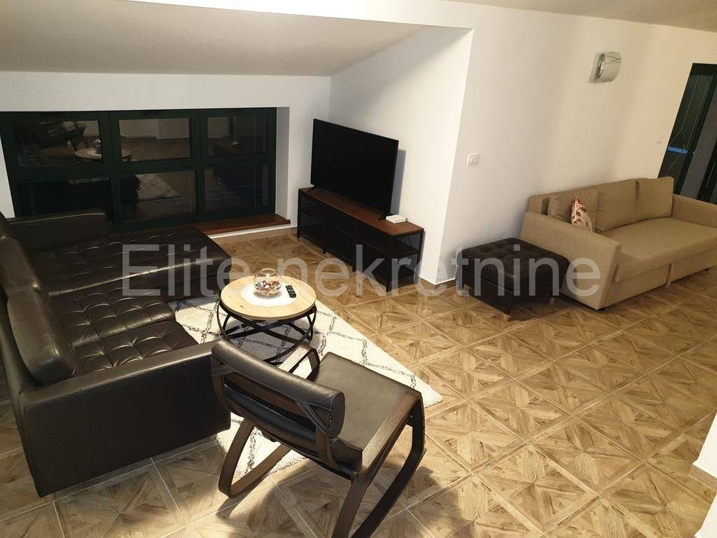 Sastoji se od 2 stambene jedinice, jednog stana od 150 m2 i drugog stana od 155 m2, te svaki od njih ima prekrasnu terasu sa fantastičnim pogledom na more!