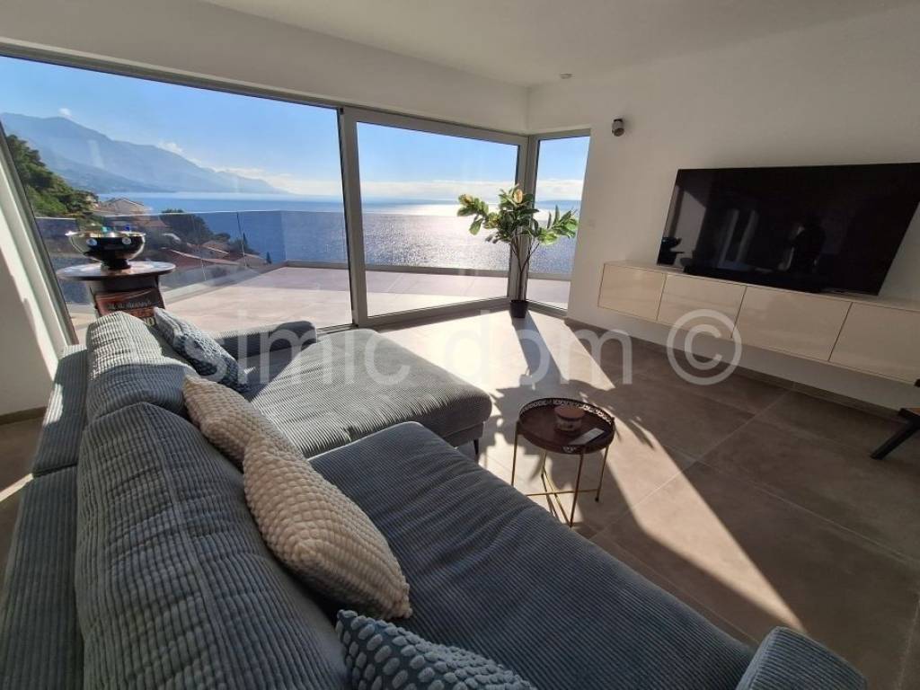 We are mediating the sale of a beautiful, newly built villa with spectacular views of the sea, islands and the entire surrounding area. The villa is located in a small village on the Omis Riviera and is approximately 15 minutes drive from Omis itself. The villa has a surface area of 220m2 and is spread over the ground and first floors. On the ground floor there is an impressive living room with a kitchen and a small toilet. The living area opens onto an impressive terrace with a swimming pool, jacuzzi and summer kitchen, as well as a small storage room. On the first floor there are three bedrooms with three bathrooms. This level of the house also offers a large terrace, ideal for quiet summer evenings. The house stands out with its large glass walls that offer privacy because they are darkened from the outside, while also allowing the owners to enjoy the impressive view undisturbed. Furthermore, the house is characterized by an innovative heating and cooling system unobtrusively hidden in the walls, as well as a number of other modern solutions. The villa is being sold fully equipped and furnished with very attractive furniture and top-of-the-line appliances, providing a sense of understated luxury. The villa also has a garage and additional storage. The nearest beaches are a few minutes' walk away, and the town itself offers a range of amenities such as restaurants, cafes, shops... Ownership is in order.