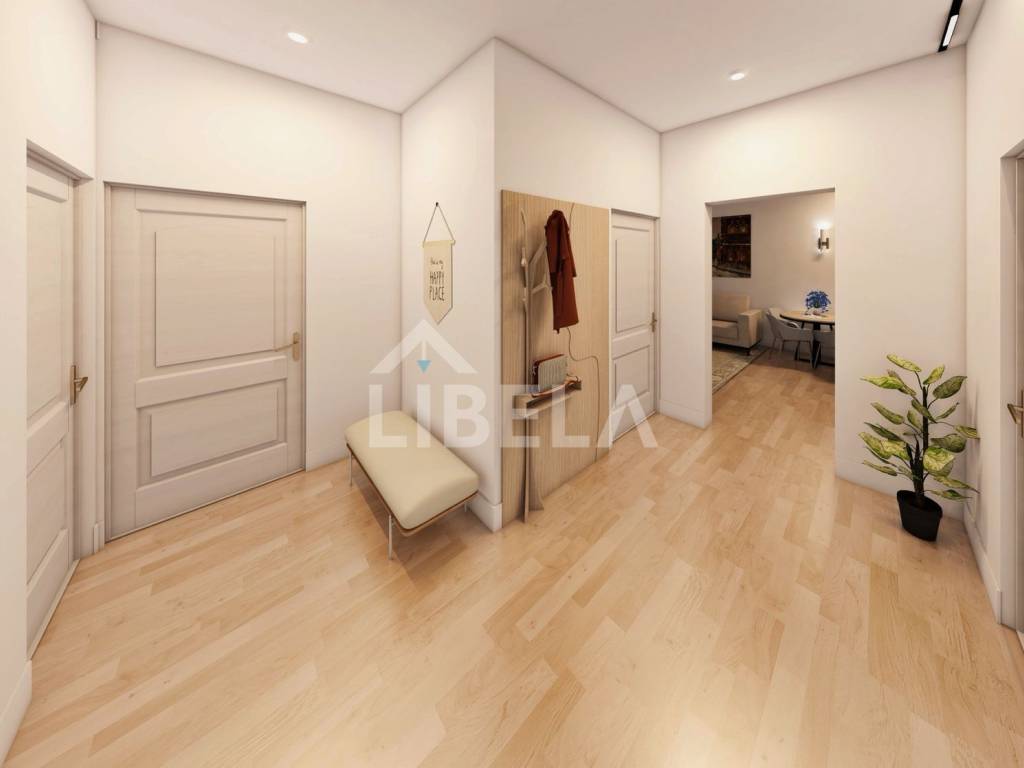 Sastoji se od ulaznog hodnika, dnevnog boravka s kuhinjom i blagovaonicom formiranih u open space koncept,dvije spavaće sobe, kupaonice, ostave i balkona.