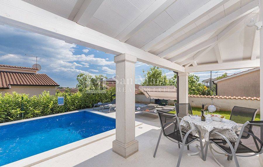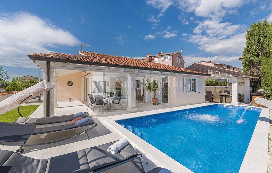 We offer a modernly decorated and completely renovated single-family house, located in a quiet and family environment, only 8 km from Poreč and the beautiful Adriatic beaches. Ideal for family life, vacation or as an investment for tourist rental.