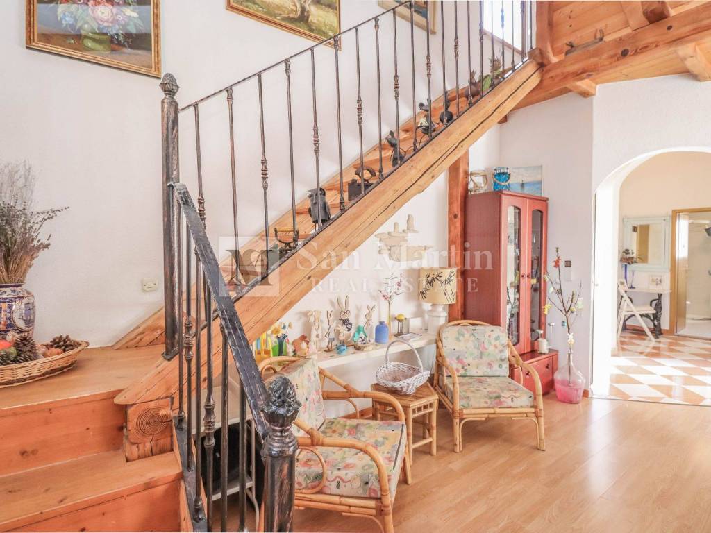 The property consists of an entrance hall and a large and spacious living room with dining room and kitchen. The dining room opens onto a sunny terrace for morning coffee, while the living room opens onto a covered terrace with a fireplace and storage. The property also has two spacious bedrooms with bathrooms on the ground floor, and one bedroom on the gallery.