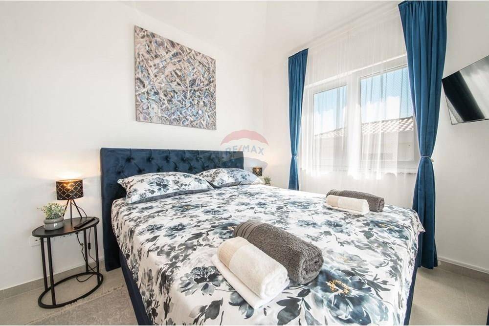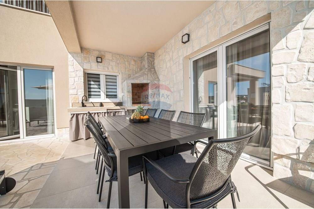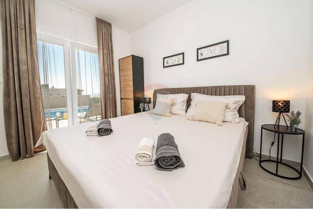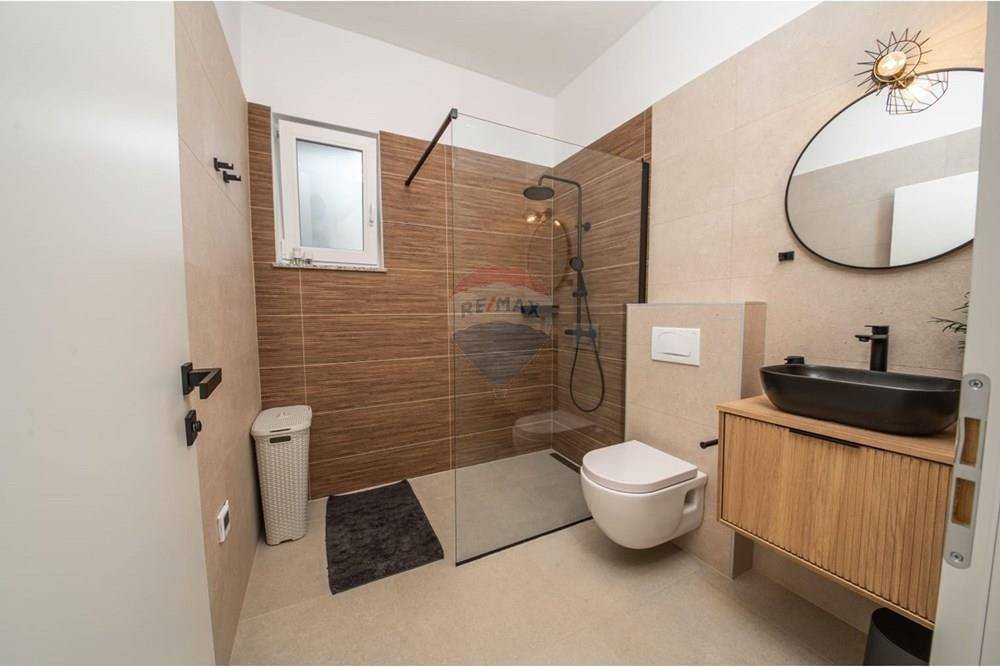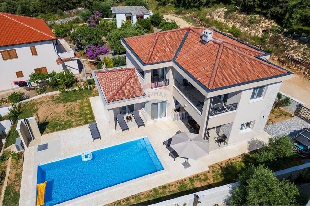 A beautiful luxury villa is for sale in the peaceful surroundings of Jakišnica. This modern, newly built villa extends over 180 m of living space spread over two floors. With three spacious bedrooms and three elegant bathrooms and one toilet, it ensures comfort and privacy. All floors in the house have underfloor heating, and the villa is fully air-conditioned and equipped.