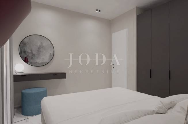 Two-bedroom apartments are designed so that they can be easily divided into two (studio and one-bedroom apartments), with balconies, which makes them ideal for tourist rental, especially in a place like Novalja, which has excellent occupancy rates.