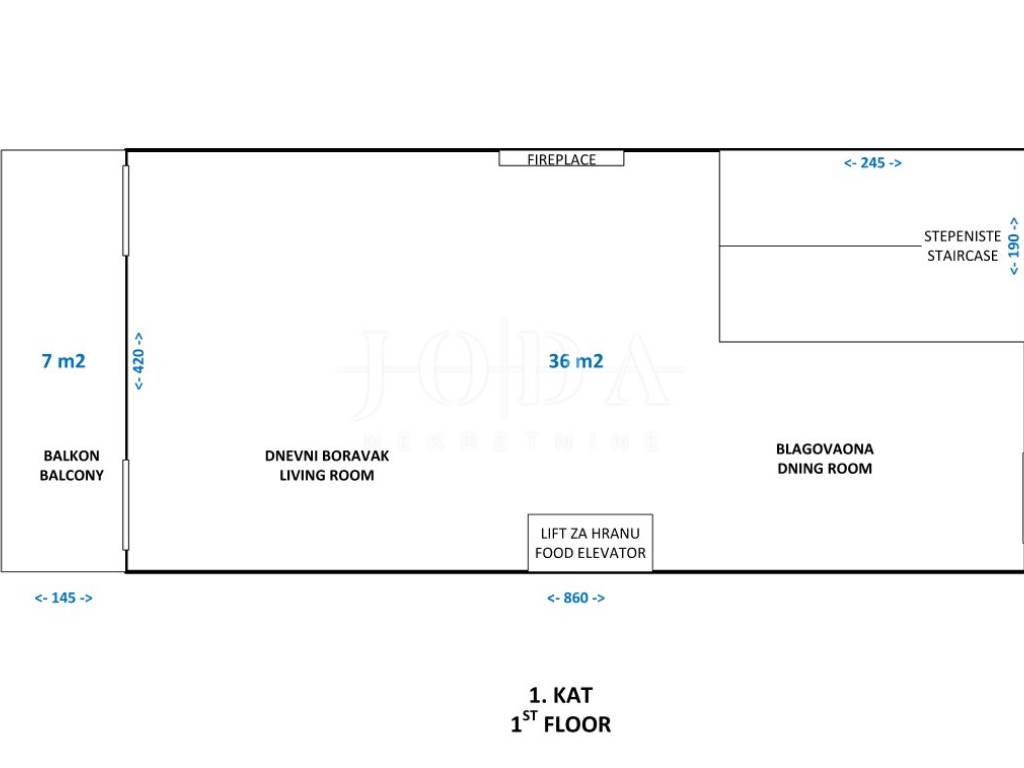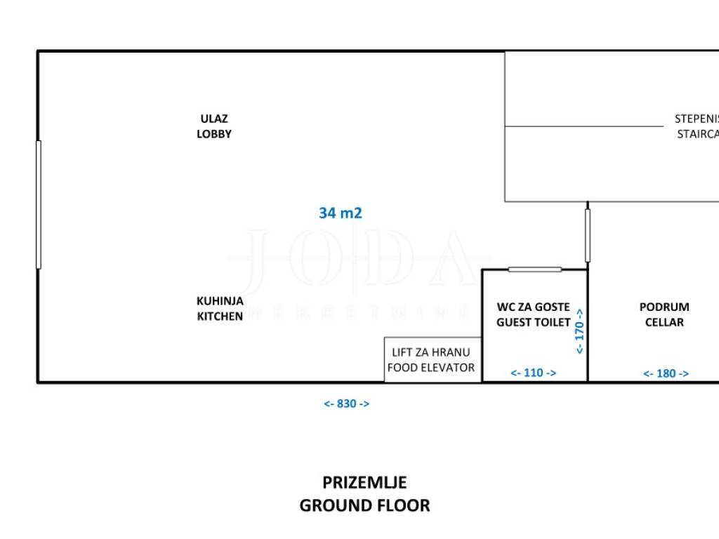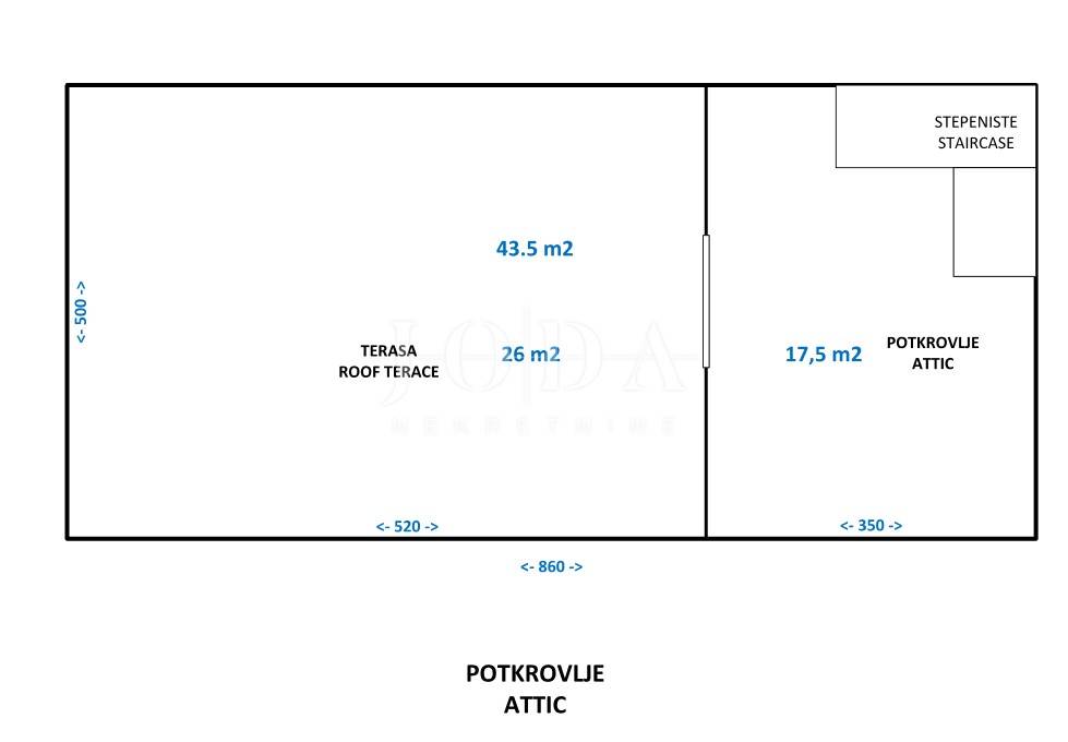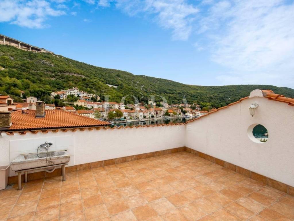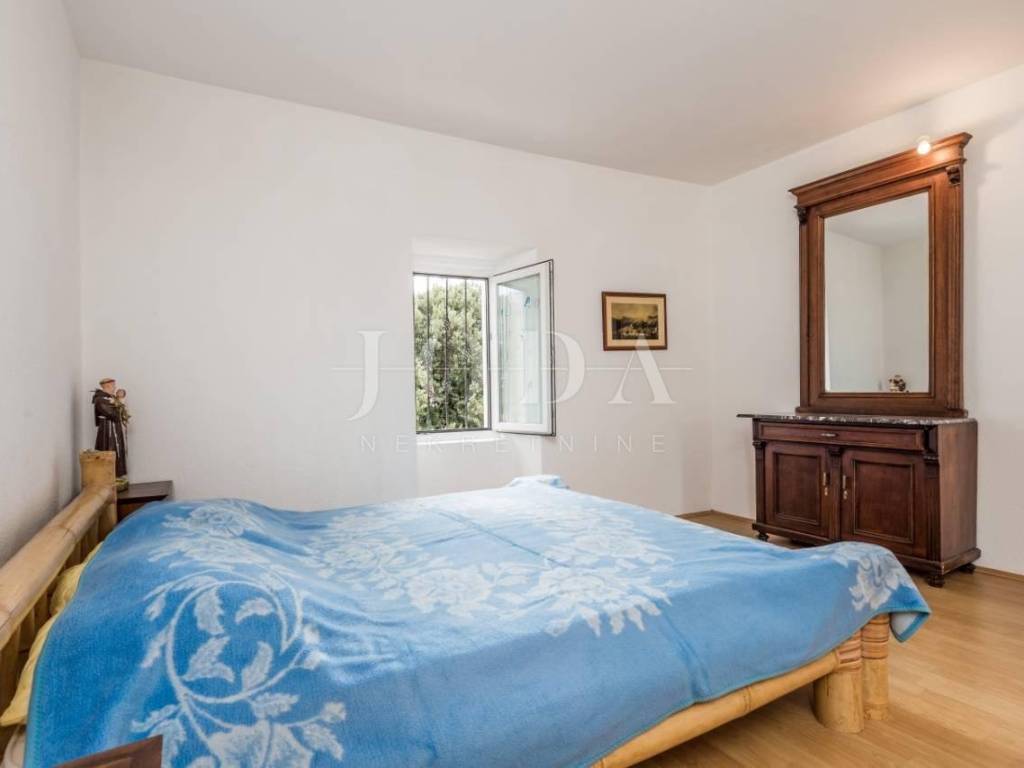 It is arranged on 4 floors so that each floor has its own function. On the ground floor there is a kitchen with a storage room, from which the freight elevator leads to the first floor. The dining room and living room are located on the first floor, so food is delivered to the dining room and the balcony by elevator. On the second floor there are two bedrooms and a bathroom, and in the attic there is a large bedroom and bathroom and a spacious terrace with a view of the sea and the old town. The house has been completely renovated, the water and electricity installations have been changed, underfloor heating has been installed, oil-fired central heating with preparation for a pellet stove, a new roof and facade.