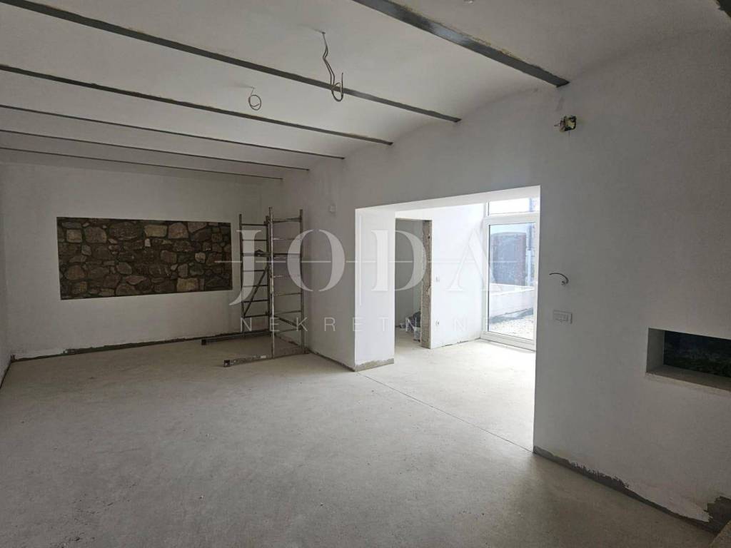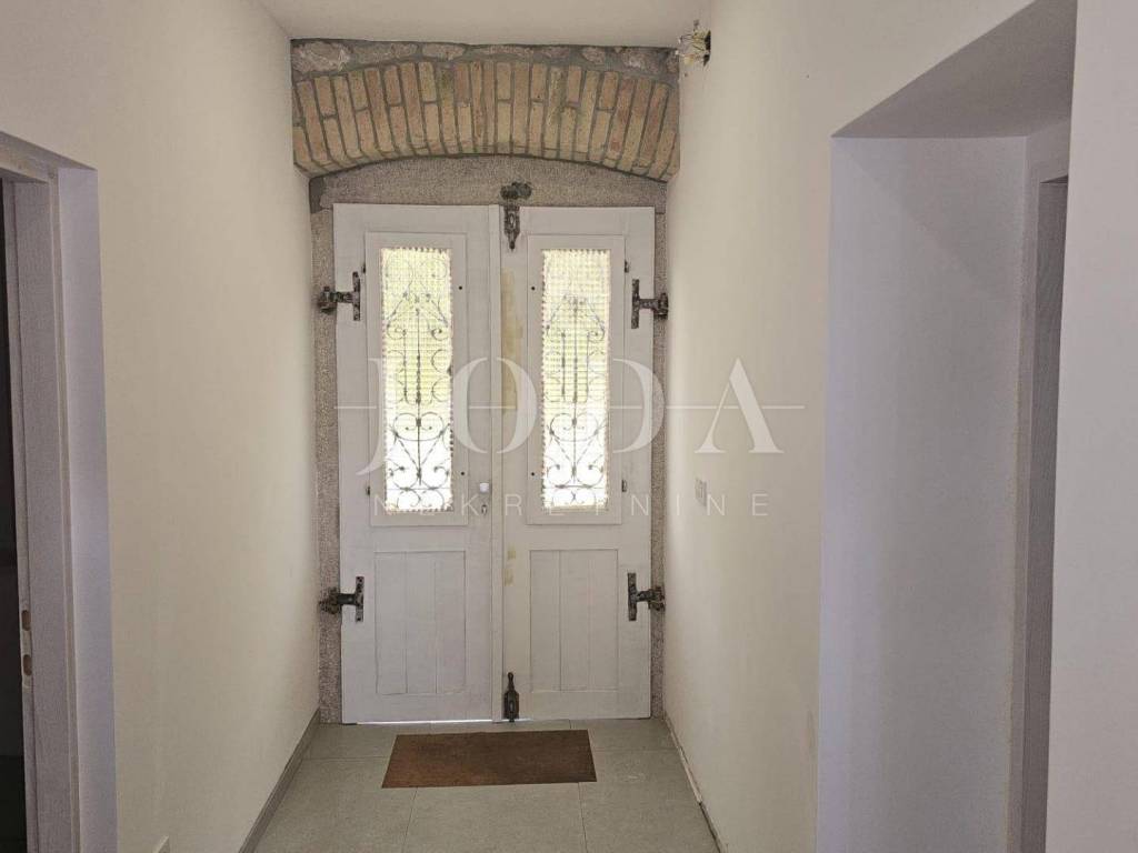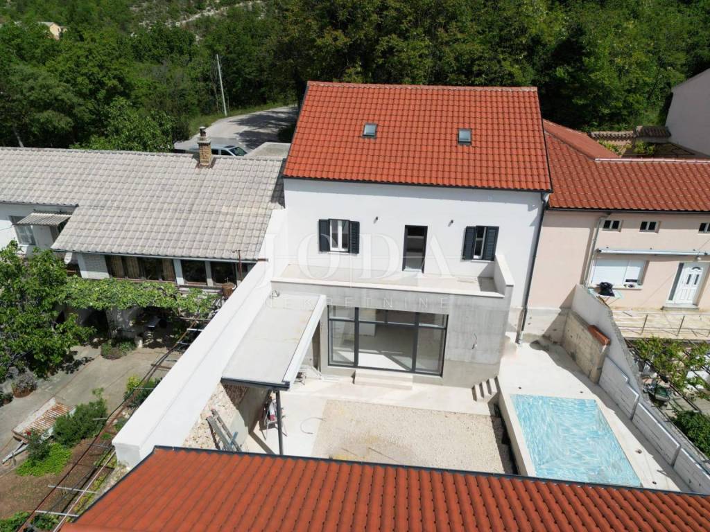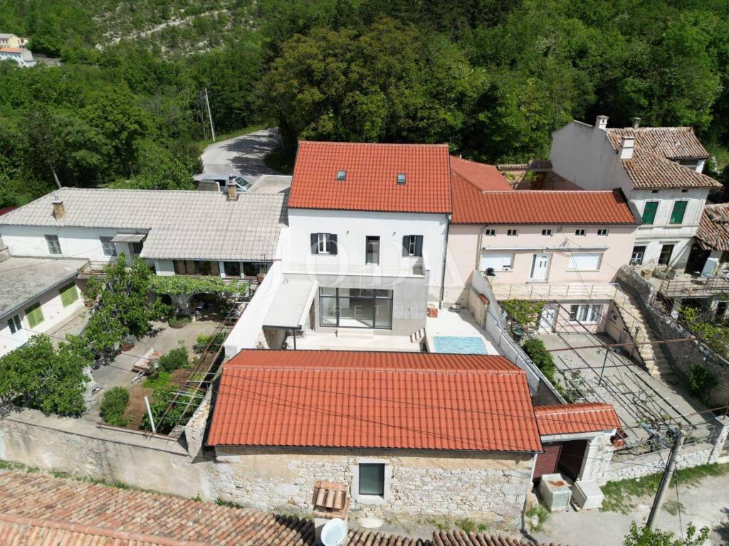 There are two entrances to the house, one to the south which leads to the patio and one to the north which leads directly into the house. The house itself is on three floors, so the bedrooms are on the last floor, while the kitchen and living room are on the ground floor and are connected to the outside courtyard, where there is a swimming pool and a place to relax. Inside the house there is a garage is another detached property with the possibility of various uses.