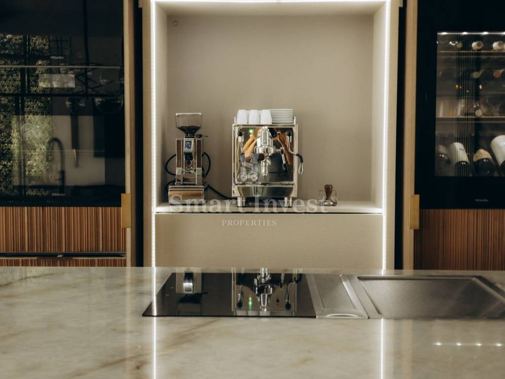 The villa with a living area of 361.98 m2 is located on a plot of land plot of 1,000 m2, and offers everything for a peaceful and pleasant life. At your disposal are 6 bedrooms and 6 bathrooms, an entertainment room, a kitchen equipped with modern appliances of the latest technology (Miele, Bora), a living room decorated with a marble table, solid parquet and furniture that provides pure comfort.
