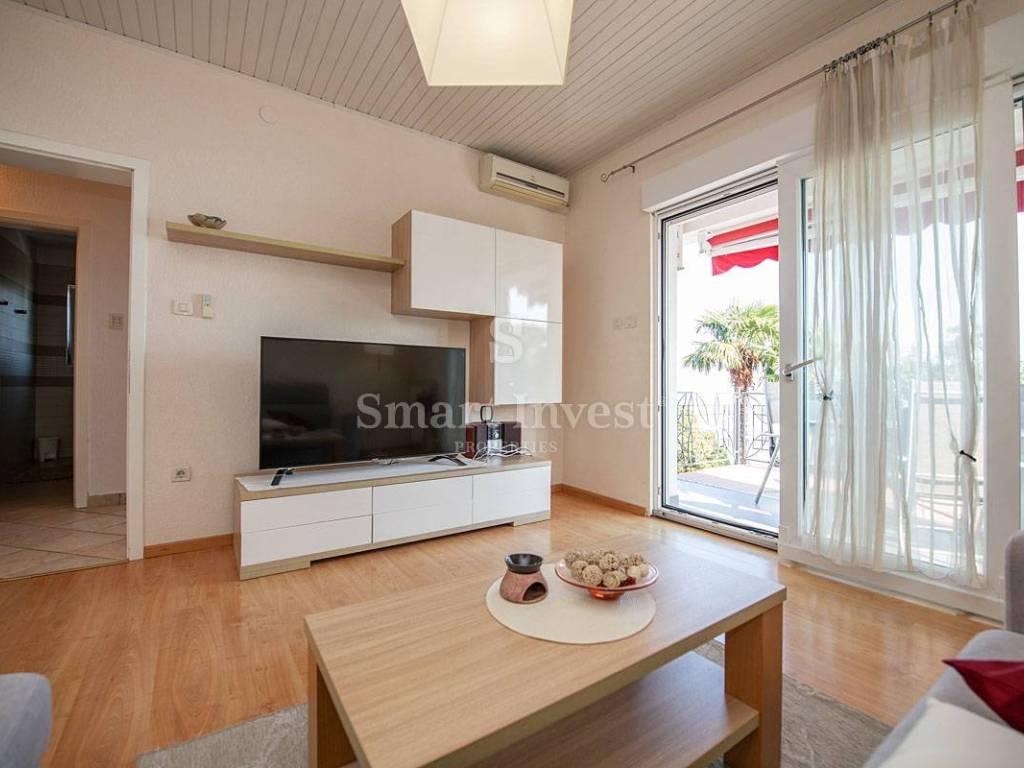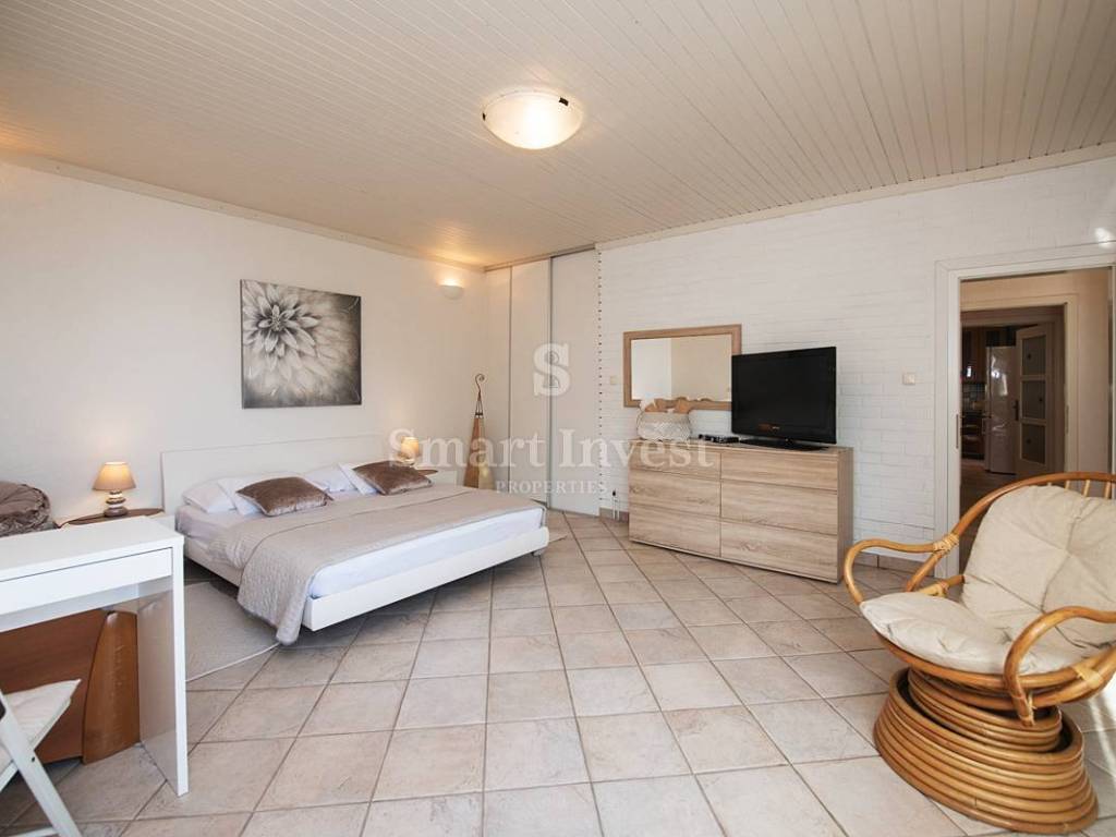 The apartment is located on the 1st floor of a beautiful villa and consists of a hallway, a living room with access to a spacious balcony with a beautiful view of the sea, a kitchen with a dining room with access to another balcony on the south side and a covered veranda on the north side, three bedrooms , three bathrooms, storage rooms. The apartment has a separate entrance and a spacious uncovered terrace.