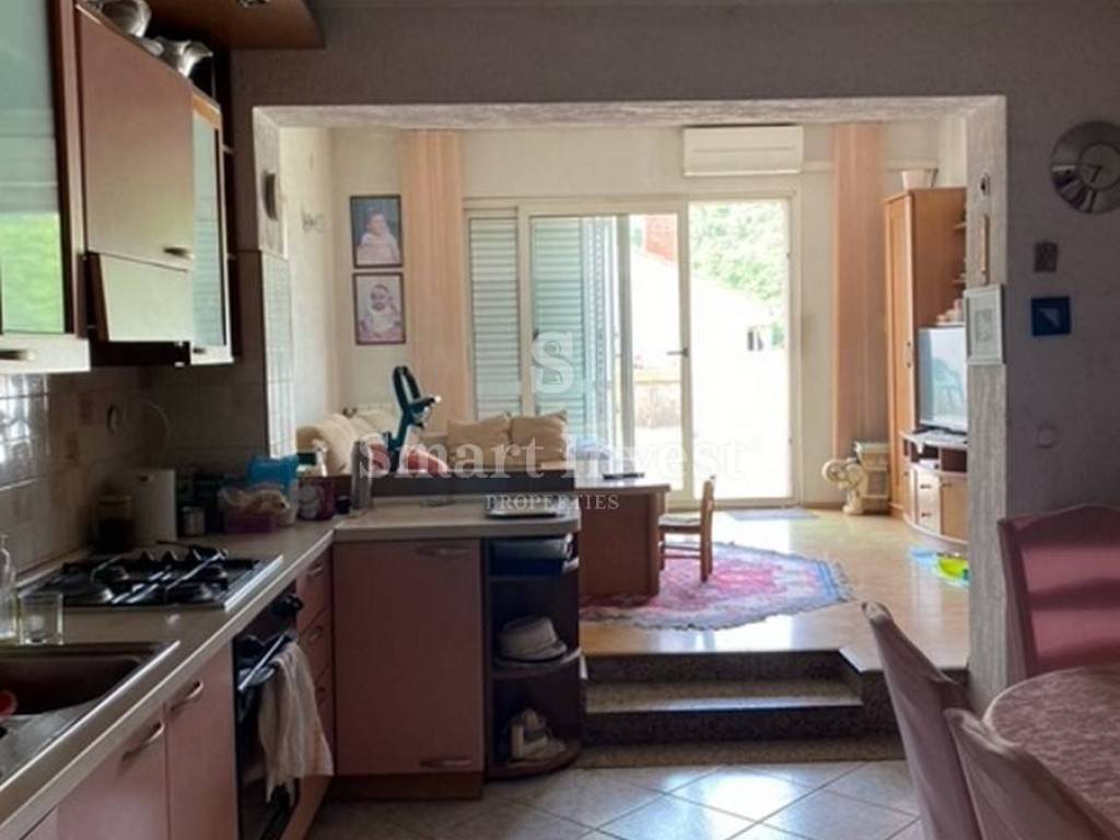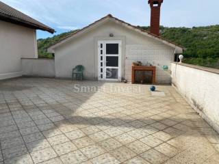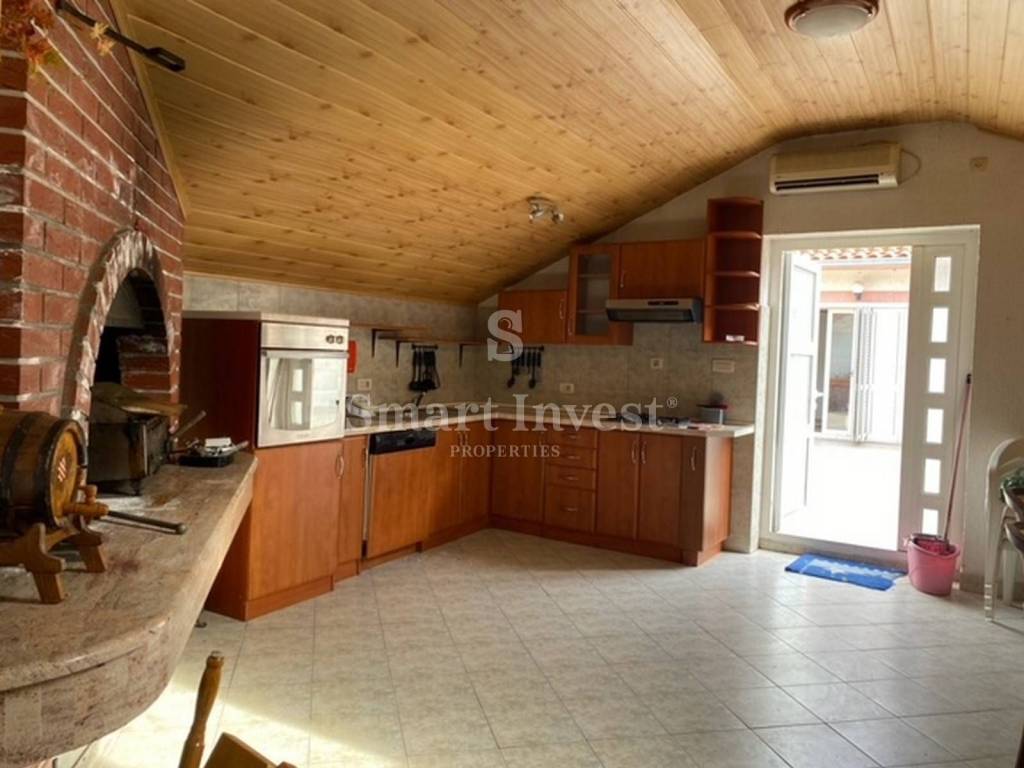 On the 1st floor there is a three-room apartment with a large living room, kitchen and a large terrace with an open view. From the terrace you enter the outdoor kitchen, which was used for various family gatherings and has a large table with chairs, a fireplace and a large pantry.
