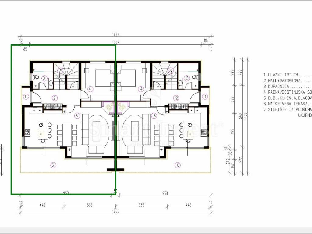 KOSTRENA, For sale is a semi-detached villa with a swimming pool under construction, in an excellent quiet location with an open sea view.