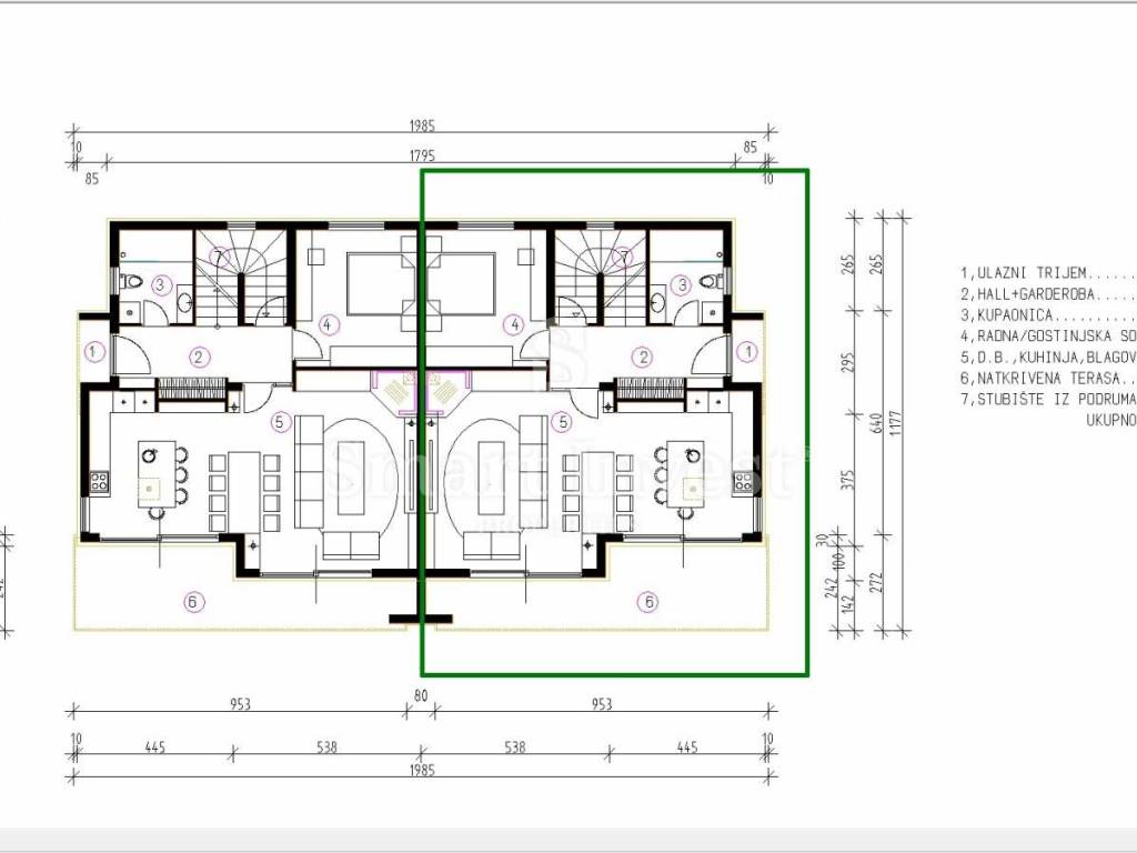 KOSTRENA, For sale is a semi-detached villa with a swimming pool under construction, in an excellent quiet location with an open sea view.
