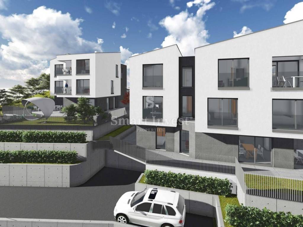 Each apartment has its own, fenced part of the garden, and each has one parking space in the garage. In one building there are 3 storage rooms available in the garage, and in the other 2 storage rooms (all from 3.5 m2 to 5 m2).