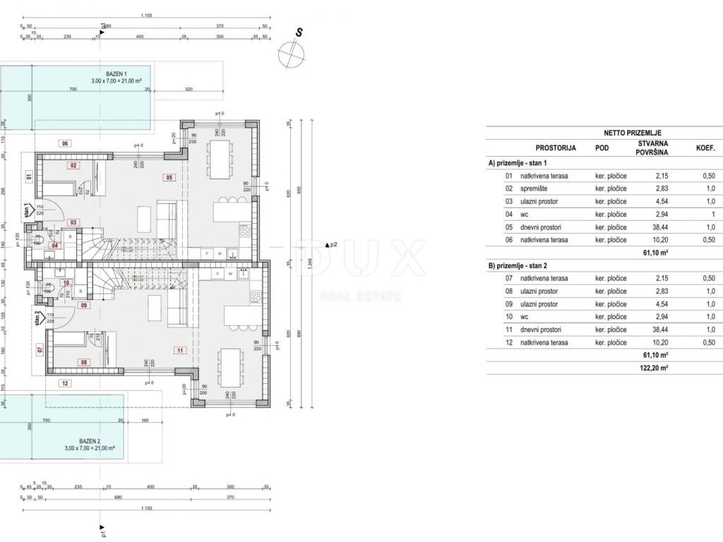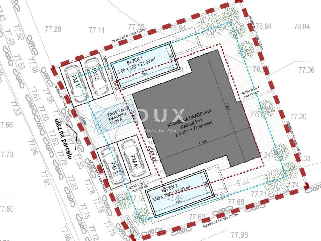 There is an existing project for a semi-detached house for the plot, with each unit having approximately 112 m2, its own swimming pool and two parking spaces.