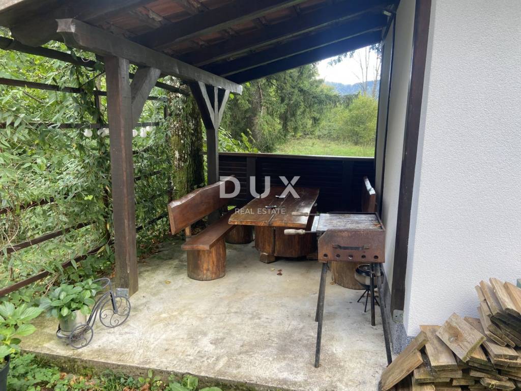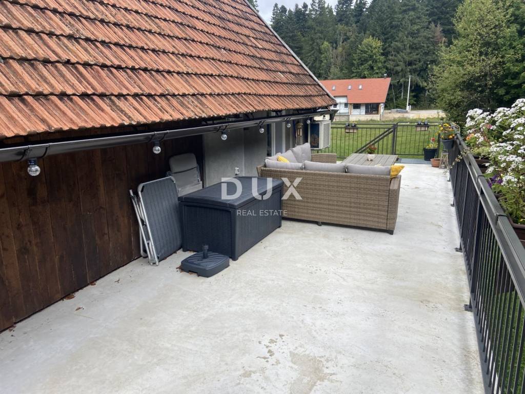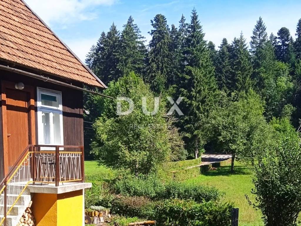 Not far from the center of Delnice, surrounded by nature, forest and fresh air and a minute from the highway exit, we are selling this small tourist complex consisting of three separate houses that are a functional and attractive unit for tourism, vacation or family life. Each house can also function as a separate unit. * The first house is organized as a comfortable two-bedroom apartment with a living room, with a separate kitchen including a dining room, and in its basement there is an additional room with a jacuzzi. This house has an area of 104 m2, has a separate toilet, and for heating it has a combination of air conditioning and a wood-burning stove. * The second house is a small object of 15 m2 and is furnished as a studio apartment with a mini kitchen, bathroom and bed. * The third house is a combination of the ground floor and the first floor. The ground floor has a large space for organizing social gatherings, with a separate kitchen for food preparation and two toilets. The floor is divided into two parts - one is a furnished apartment of 25 m2 with a separate bedroom, bathroom and kitchen with a small living room. The second part of the floor is unfurnished, although preparations have been made. This part is surrounded by a beautiful terrace of 40 m2, quite intimate and isolated from the other two houses with a view of the forest and beautiful nature. Each house is fully furnished and equipped, and fully functional. There are various possibilities that this property offers, and the unspoiled nature and privacy are certainly a great advantage. It is also ideal for investors or families who want a life in nature with the possibility of income. For all other details and to arrange a viewing of the property, please feel free to contact us.