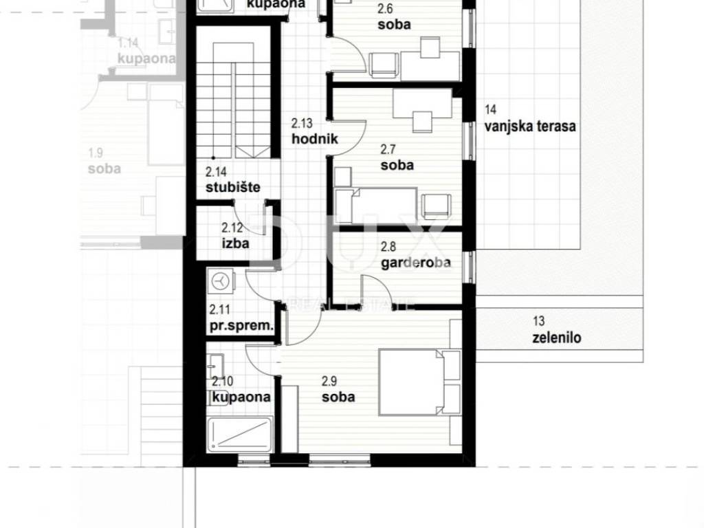We offer a property that offers you modern design and elegance, comfort and top-notch equipment, and is located in a beautiful quiet location near public transport, schools, kindergartens, shopping centers and a ten-minute drive from Rijeka. The complex of 4 residential buildings with a total of 8 apartments is located north of the Adriatic highway in the area of "Zelena Kostrena" from where there is a beautiful view of the entire Kvarner. In the immediate vicinity there are 10 kilometers of well-maintained hiking, cycling and fitness trails that pass through the highest parts of Kostrena from the Solin peak to the Sopalj peak. Access to the houses is arranged from the upper road where the arrangement and expansion of the existing road is planned. Each house has four outdoor parking spaces, or two parking spaces per residential unit. Each house consists of two apartments. The apartments on the upper two plots are located one above the other, while the apartments on the lower two plots are located next to each other. Each apartment has a part of the garden. HOUSE C apartment S2 - C: LIVING SPACES: - living room / dining room 32.01 - kitchen 11.10 - staircase 5.72 - entrance 7.96 - toilet 2.78 - room 10.20 - room 10.21 - wardrobe 5.39 - room 14.89 - bathroom 4.44 - laundry / storage room 2.75 - pantry 2.44 - hallway 7.46 - staircase 7.64 - staircase 7.79 - tavern 32.17 - storage room 4.52 - toilet 2.79 - covered terrace 15.28 - terrace 15.52 - storage room 4.57 - bathroom 4.60 TOTAL LIVING SPACES: 212.23 m ASSOCIATES SPACES: - greenery 54.50 - outdoor terrace 12.26 - swimming pool 18.00 - greenery 3.99 - outdoor terrace 15.16 - greenery 17.92 - greenery 7.97 - parking space 3 11.95 - parking space 4 11.95 ASSOCIATES TOTAL: 153.70 m APARTMENT S2-C TOTAL: 365.93 m This luxurious apartment is designed for maximum comfort. EQUIPMENT: The house in which the apartment is located is well-built and luxuriously equipped, all installed materials, floor and wall coverings are of the highest standards. - 10cm thick facade insulation - underfloor heating - heat pumps - top-quality aluminum joinery. The apartment has its own garden and 2 parking spaces. PRICE: The stated price refers to a completely finished turnkey facility, without furniture. The price includes VAT, the buyer is exempt from paying real estate tax. In the case of purchase to a company registered in Croatia, a full VAT refund is possible after the sale. Clean and tidy ownership. Certainly a beautiful property for luxurious family life, but also suitable as an investment in the form of elite tourism. UNIQUE PROPERTY DEFINITELY WORTH YOUR ATTENTION IN A GREAT LOCATION!!! KOSTRENA Kostrena is an old popular seaside town, first mentioned at the beginning of the 15th century. It gained its first municipal independence in 1874, but it kept it for a very short time, only two years. It is divided into two parts, St. Lucia and St. Barbara, according to the names of two churches that exist in its area. Kostrena is located in the immediate vicinity of the city of Rijeka, framed by the Martinšćica Bay and the Bakar Bay. The Kostrena peninsula is about 10 kilometers long and gently slopes towards the coast. Along its entire length there are beautiful beaches that are visited by thousands of bathers during the summer. The most famous and most visited are those in the Žurkovo bay, followed by Smokvinovo, Svežanj, Spužvina, Podražica, Nova voda and Perilo. Kostrena consists of about twenty settlements, many of which were named after families, and today the most populated are Vrh Martinšćice, Glavani, Sv. Lucija, Rožmanići, Doričići and Paveki. The characteristic karst area with Mediterranean plants and the famous Kostrena gromača, and the mild climate that sometimes gives way to strong gusts of the bora wind, are the characteristics of this region.