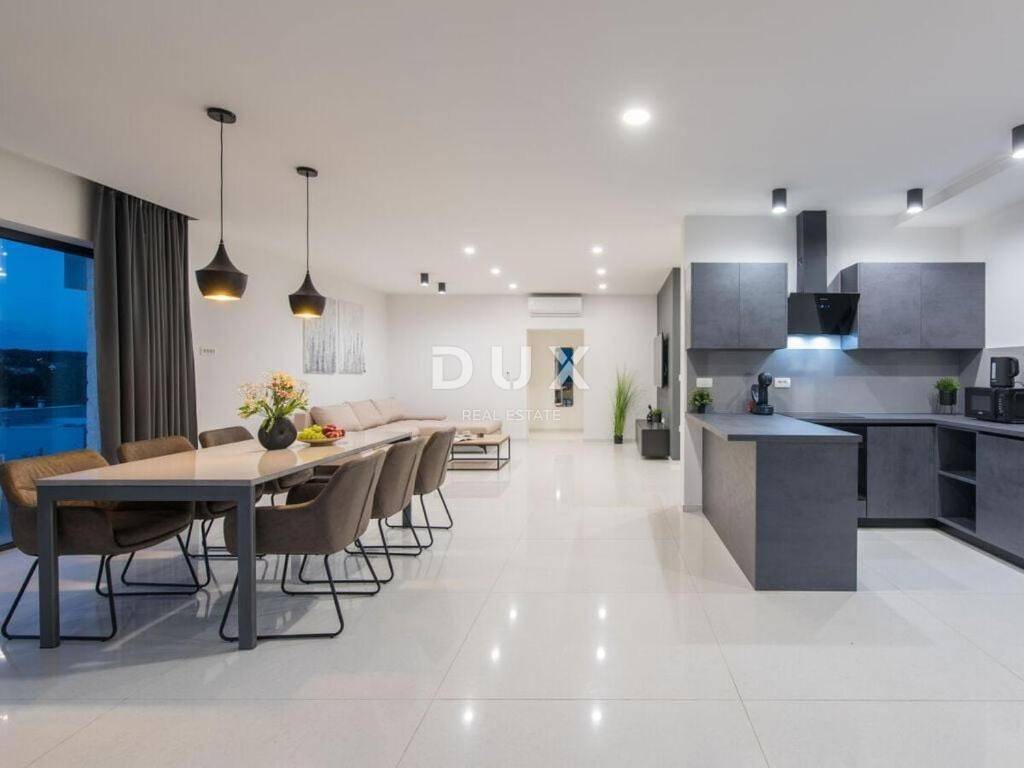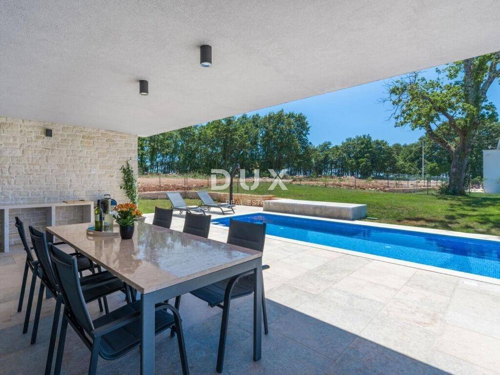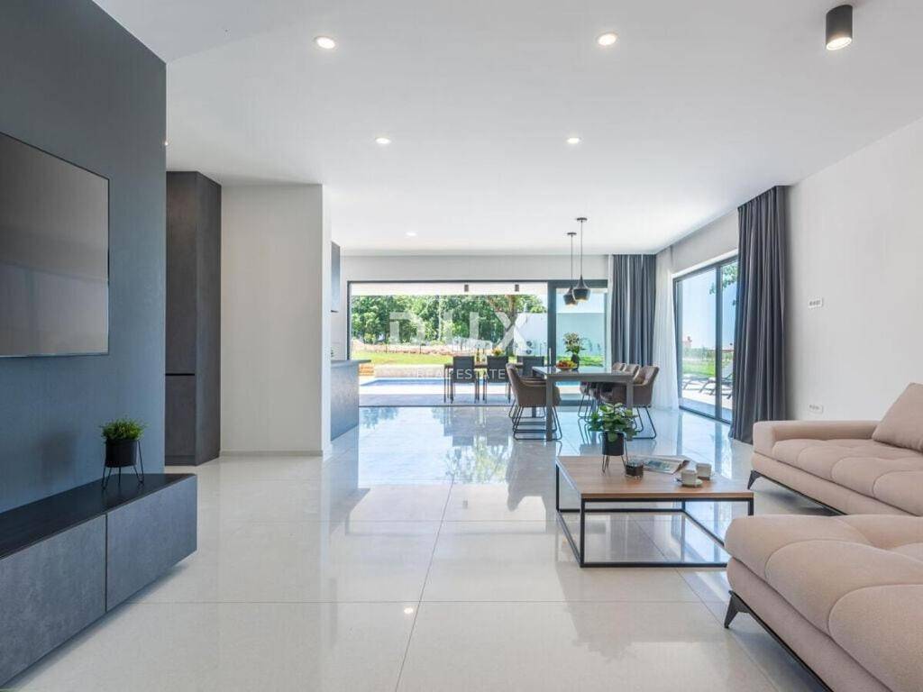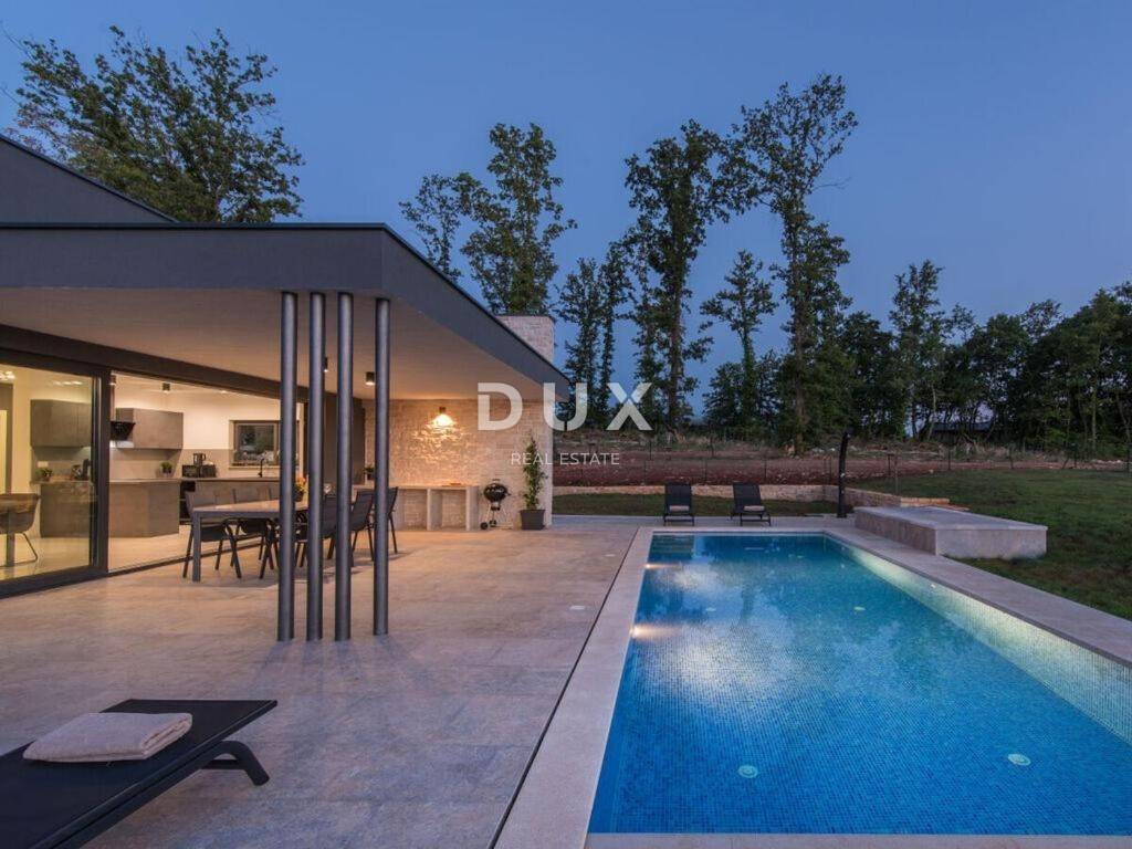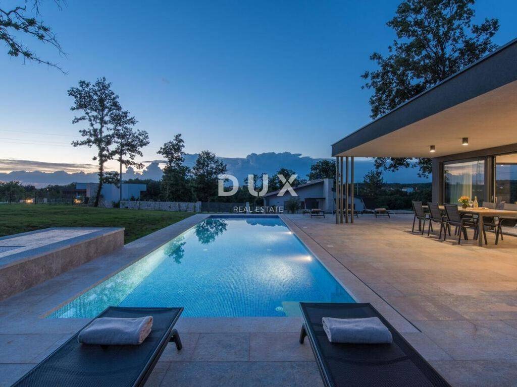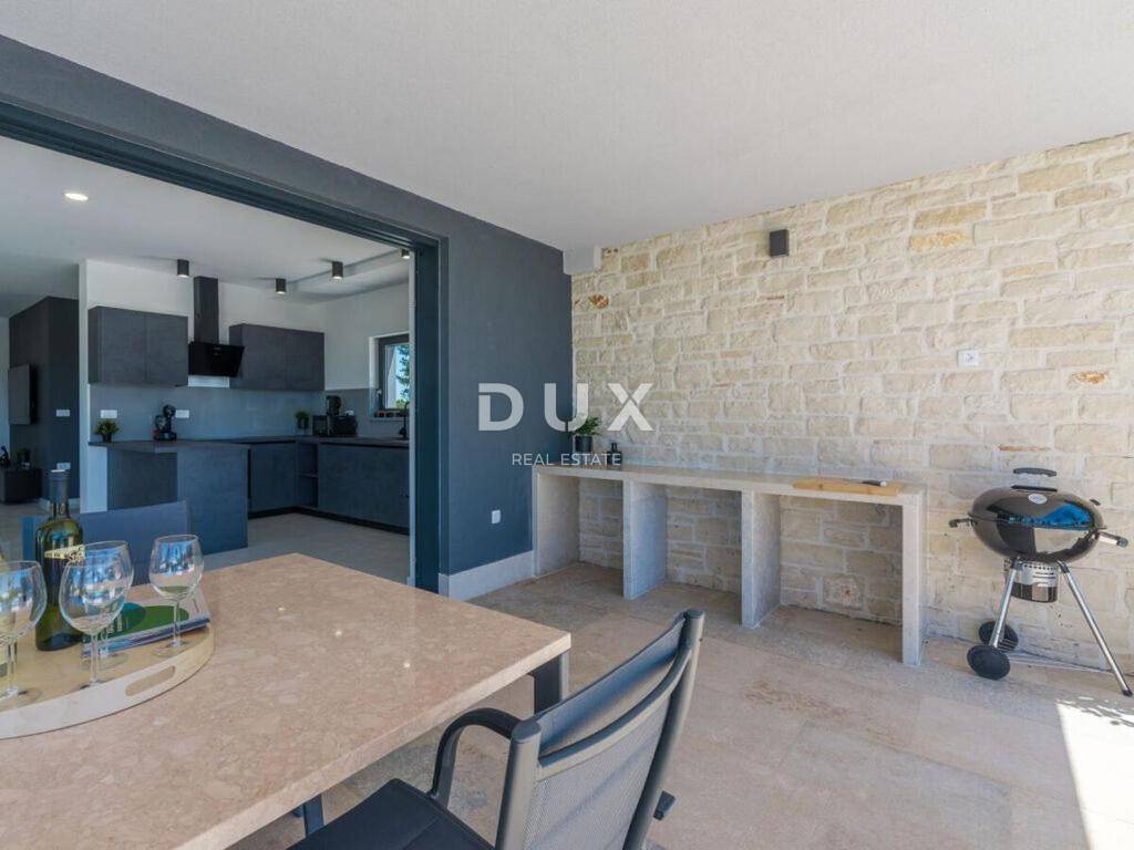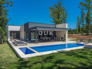 DUX nekretnine offers a beautiful single-storey house on a spacious plot of 1527 m2! This beautiful single-storey house offers maximum comfort both in terms of interior and exterior. It offers you 140 m2 of living space and consists of a hallway, open space living room with kitchen and dining room. From the living room you exit to a beautiful terrace overlooking the pool and plot. There are two spacious and comfortable bedrooms, each with its own bathroom, and an additional guest toilet. Air conditioning is used for heating and cooling, and all rooms are equipped with underfloor heating. The villa is being sold furnished and has been successfully operating as a tourist rental for several years. Proper documentation and 1/1 ownership. Due to the concept of the house itself and the beautiful terrain on which it is located, it is a very attractive choice for your new home!