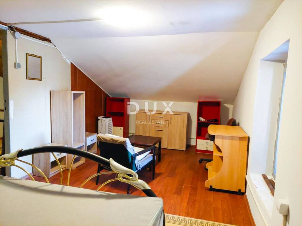 OPPORTUNITY A FEW MINUTES FROM THE CENTER! For sale is a duplex apartment of 104 m2, located in a prime location in Rijeka. The apartment is located on the first floor and in the attic of a house with a new facade and roof. A private external staircase leads to the first floor of the stone house, which is also the first floor of the apartment. On this floor there is an entrance hall, bathroom, large bedroom with access to a balcony, equipped kitchen and dining room and living room also with access to a balcony. An internal wooden staircase connects the first floor with the attic, where there are two large bedrooms and a hall that can be arranged as a study corner or wardrobe. A special value to this property is given by the 40 m2 terrace, located at the back of the house, completely fenced and hidden from view. Also, up to 3 parking spaces are provided on the plot, which is a real rarity in the city center. The interfloor structure is concrete, while the attic structure is wooden. The new roof is insulated with stone wool. The apartment is air-conditioned, and for heating, Glamox electric panels have been additionally installed and a stove is used in the dining room. The property is ready to move in and is being sold furnished. Minor renovation is desirable, leaving you the opportunity to arrange the space according to your own wishes. Ideal for a small family or as an investment for rent, given the excellent location!