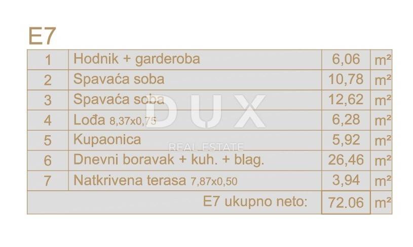 LOCATION DESCRIPTION: The municipality of Ližnjan is surrounded by the sea on its southern and eastern sides. On the southwestern side it borders the municipality of Medulin, on the western side with the city of Pula, and on the northern side with the municipality of Marčana. It stretches along a coastline of about 27.6 kilometers and includes numerous bays. Approximately 1,800 hectares of the area of the municipality of Ližnjan belongs to the coastal area. The municipality of Ližnjan-Lisignano includes the following settlements: Ližnjan, Valtura, Šišan-Sissano, Jadreški and Muntić. PROPERTY DESCRIPTION: This beautiful apartment in a newly built building is located in Ližnjan. The residential building has a total of three floors and eight residential units. The property in question is located on the second floor of the building and has a total living area of 72.06m2. It consists of an entrance hall, a spacious living room connected to the kitchen and dining room, which opens onto a beautiful, spacious terrace that offers an unobstructed view of the beautiful sea and islands. The private part of the apartment hides two bedrooms with access to a loggia and a large bathroom. On the ground floor of the building there is a storage room that belongs to the apartment, while in the building's yard there is a parking space that belongs to the apartment. After purchasing the apartment, the current owner will decorate it and at that moment he can influence the choice of floor coverings, wall color, etc., so that the new owners can decorate their home according to their preferences. This will give you a new apartment, decorated as you wanted and you can start a new story, in a new apartment, with a beautiful view of the sea! For all additional information about the property and arrangements for viewing it, call your agent!