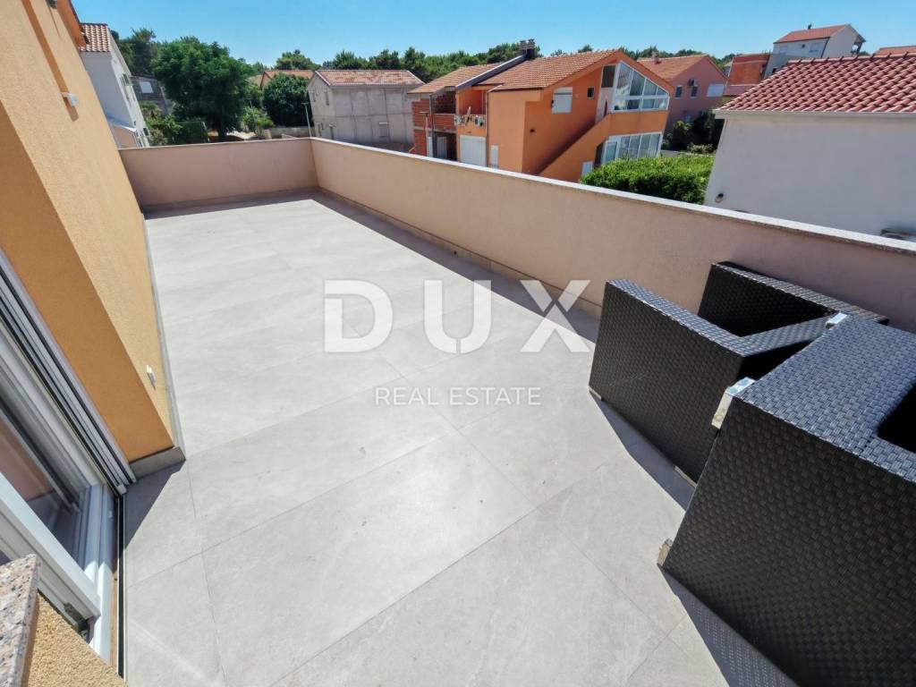 For sale is a beautiful apartment on the first floor of a house with a total of three apartments, located in a quiet part of Vir. The house consists of a ground floor and an upper floor, with two ground floor apartments already sold, and this upper floor apartment stands out with numerous advantages. It has its own large fenced yard of 78 m2, with enough space to park at least three cars - a real rarity and advantage for this location. The apartment has a spacious open terrace with a beautiful view of the sea, ideal for enjoying morning coffee or evening relaxation. In addition, there is an additional covered terrace that can be completely closed, equipped with air conditioning, which allows it to be used throughout the year. The apartment itself consists of three bedrooms, a modern bathroom, a kitchen connected to the living room and additional air conditioning in the living room for maximum comfort. The property is sold fully furnished, with carefully selected furniture and equipment, and is completely ready to move into without additional investments. It is divided into condominiums and has a usage permit, which further facilitates the purchase. The location is extremely attractive - only 400 meters from the beautiful Velika Slatina beach, which allows you to be on the crystal clear sea in a few minutes' walk. Vir is an island connected by a bridge, with a rich tourist offer, natural beauties and a relaxed island spirit. It is only a 25-minute drive from Zadar, a city rich in history, culture and excellent transport connections. Do not miss this rare opportunity - contact us today and arrange a viewing!