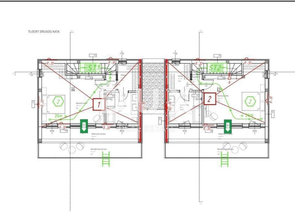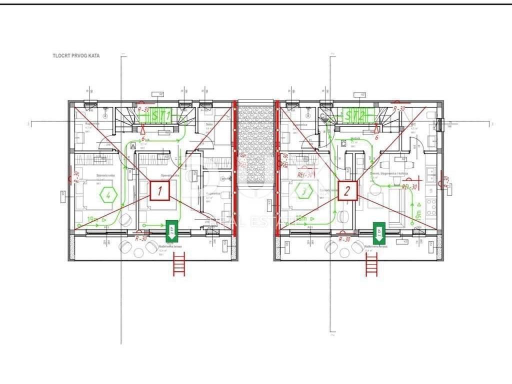 Bathed in a pleasant Mediterranean climate, located in the heart of the western Istrian coast, the ancient town of Poreč and its coastline of preserved natural beauty, landscaped parks, pine and oak groves that reach the sea itself, along which the clear sea, beaches, bays and islands alternate, spreads over an area of 139 km and consists of 58 settlements. With the identity of an urban coastal city, Poreč is a city of culture, sports, entertainment, a city of tourism and true hospitality. One of the most attractive cities of Croatian tourism that uniquely combines the natural beauty of Istria, a rich cultural and historical heritage and the most modern amenities of a top tourist destination. The harmony of the old town core, which is a cultural monument, with one of the most famous Istrian cultural monuments, the Euphrasian Basilica, which is on the UNESCO World Heritage List, and the most well-maintained and best-equipped tourist settlements on the Adriatic, forms a mosaic of unforgettable experiences. Poreč is also a city that is much more than a summer destination of sun and sea. Poreč is a city tailored to the needs of humans. A city in which there is a constant impulse to make living conditions better and progress in various spheres greater. A city that is a pleasant, safe and well-maintained place to live where everyone can find their place, a city without surtaxes with high social sensitivity for all generations. Price of the left house: 280,000 Price of the right house: 320,000 Price for both: 600,000 (these prices are valid only in this phase of construction) Quiet settlement, near Poreč 2 houses under construction The left house is spread over the ground floor and two floors. The ground floor has a kitchen and living room in an open space, and a bathroom. On the first floor there are two bedrooms, each with its own bathroom and access to a balcony with a beautiful sea view. On the second floor there is a smaller children's room and a spacious master bedroom with a terrace and sea view. Each house has an 8x3 swimming pool and there will be a partition between the houses. The right house has an identical layout to the left, with one significant difference: on the second floor there are two identical bedrooms, each with its own bathroom and balcony.
