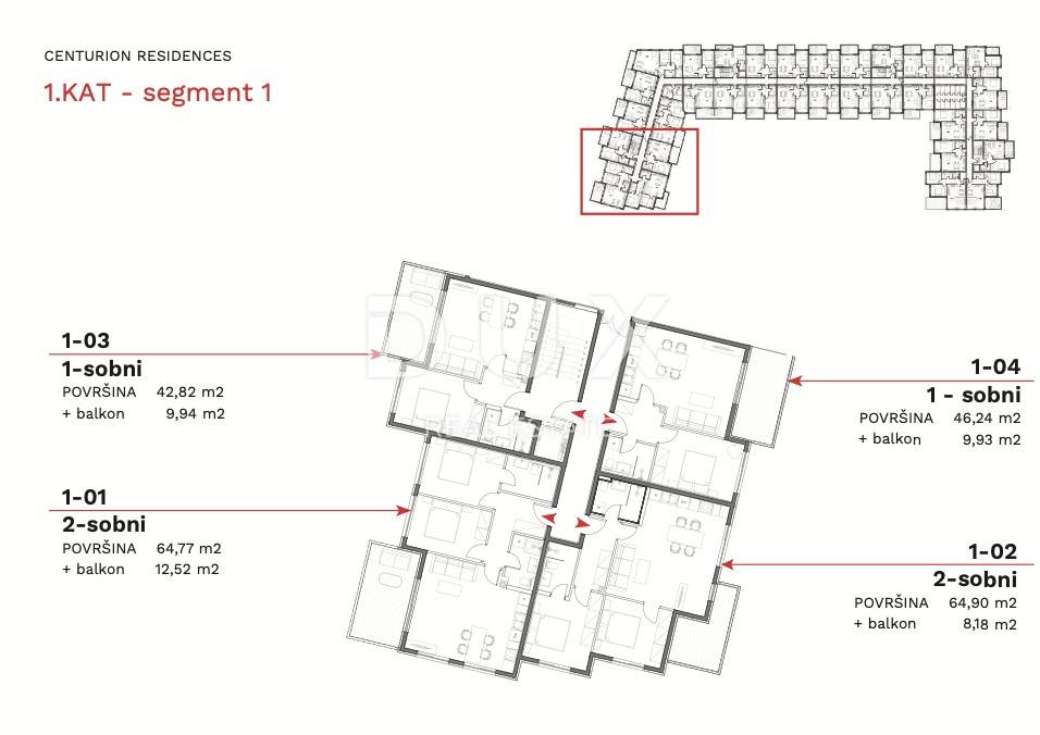 We proudly present to you an exclusive two bedroom apartment with an elevator in one of the most prestigious new buildings in Umag. This spacious apartment with a total area of 77 m2 is located on the first floor of this imposing residential building. The apartment offers elegance and comfort, it consists of a spacious living room with a modern kitchen, two luxurious bedrooms, two elegant bathrooms, and a balcony of 13 square meters. The apartment comes with a storage area of 2.95 m2, one covered parking space and one garage parking space, making your daily life extremely practical. This apartment building was built with a professional approach and attention to detail. The building is designed from reinforced concrete monolithic construction with mezzanine panels for additional safety and stability. Inside the apartments, partition walls are made with double-thick plasterboard coverings, providing excellent thermal and sound insulation. The facade cladding is in the ETICS system with thermal insulation 10 cm thick, ensuring energy efficiency. New generation high-quality PVC carpentry with electric blinds provides additional comfort and safety. Each apartment is equipped with a top multisplit heating and cooling system, ensuring perfect temperature and economy. The apartments have their own meters for water and electricity, and sanitary water is heated using an electric boiler. In addition, each apartment has a telephone, antenna, TV and Internet connection, with a built-in video intercom for greater security. The apartment is covered with high-quality parquet in the rooms and living room, while the corridors and hallways are equipped with elegant tiles. With the highest quality materials and equipment, this apartment not only provides extraordinary comfort for living, but is also ideal for renting for tourist purposes. The planned completion of construction is in the middle of 2025, which will allow you to quickly enjoy all the advantages of this luxury apartment. The location is perfect, just 700 meters from the sea and the center of Umag, which allows you to enjoy all the charms of this beautiful Mediterranean city. General specifications of the building: Ground floor: - 1x studio apartment with garden - 18x apartments with one bedroom, living room, terrace and garden - 5x apartments with two bedrooms, living room, terrace and garden - 43x storage room 1st floor: - 26x apartments with with one bedroom, living room, terrace and garden - 7x apartments with two bedrooms, living room, terrace and garden - 16x storage room 2nd floor: - 26x apartments with one bedroom, living room, terrace and garden - 7x apartments with two bedrooms, living room, terrace and garden - 16x storage room 3rd floor: - 24x apartments with one bedroom, living room and balcony - 7x apartments with two bedrooms, living room and balcony - 1x apartment with three bedrooms, living room , balcony and loggia - 14x storage Underground garage: - 74 parking spaces - 33 storage spaces Ground parking: - 26 covered parking spaces - 82 uncovered parking spaces Do not miss the opportunity to become the proud owner of this luxury apartment in Umag and enjoy an exclusive life experience in one of the most attractive new buildings on the market. For additional information and viewing of the apartment, contact our agency today.