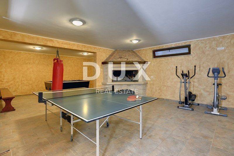 ROVINJ - a small town located in Istria that has been declared one of the most beautiful towns in Croatia. Anyone who visits this magical town once has a hard time forgetting it and often returns to it again. The beauty of Rovinj often leaves a deep mark on all visitors, so the connection with it extends for generations. Rovinj is located on the western side of the Istrian peninsula, and extends north of the Lim Channel, and south to Bale. It is adorned with a very indented archipelago with as many as 14 islets and 6 cliffs. The most famous islands are Sveti Andrija (Crveni otok) and Sveta Katarina near the old town center. Rovinj is the strongest tourist center in Croatia and has been recording a record 3 + million overnight stays during the summer season for several years in a row. Guests spend their stay in the rich offer of the city of Rovinj; starting from the numerous and different accommodation capacities, various restaurants and activities, numerous and beautiful beaches, and most importantly, the history of the city and its location. This beautiful family villa is located in this location, just 7 km from the center of beautiful Rovinj, and will enchant you with its character and carefully selected quality materials. The space in the villa is organized in a way to ensure a pleasant stay worthy of today's standards and a modern lifestyle, so its 385m2 is divided into a total of two floors, ground floor and first floor, and a basement or cellar, measuring 100m2, which houses a fireplace, billiards, fitness and bathroom. On the ground floor of the house there is an entrance hall, kitchen and dining room, living room, bedroom with bathroom and another additional bathroom. On the first floor of the house there are three bedrooms with bathrooms. On the spacious, well-maintained garden there is a swimming pool measuring 5.5mx 10.5 m. covered with foil. In the courtyard of the house there are two more built buildings that currently serve as a garage (50m2) and a workshop (70m2). Heating in the house is via central wood heating, the house has 5 air conditioners.