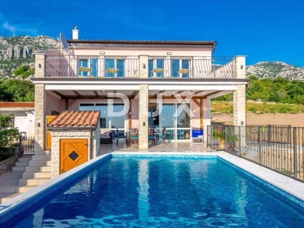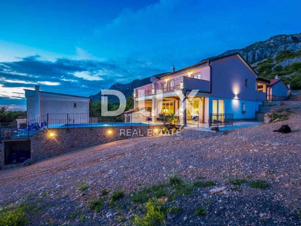 Beautiful luxury holiday villa for sale. Built in 2017, located near Senj. The house has two floors with spacious terraces, a large beautiful courtyard with a 32m2 swimming pool and extends over a plot of 528m2. In the basement there is a boiler room and two cisterns. The ground floor consists of a large living room with access to the terrace with a 32m2 swimming pool, as well as a dining room, bathroom, toilet and sauna. On the first floor there are two rooms from which an unforgettable panoramic view of the sea is offered. Each room is equipped with top-quality furniture, has a smart TV, bathroom, jacuzzi and underfloor heating and has a recreation room. There is also a studio apartment within the house. The house is successfully rented. It is sold fully furnished and equipped. Definitely a property that provides maximum comfort, convenience, privacy and the beauty of untouched nature. WORTH YOUR ATTENTION !! A PROPERTY THAT WILL LEAVE ANY POTENTIAL BUYER BREATHLESS!!!