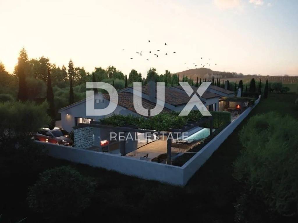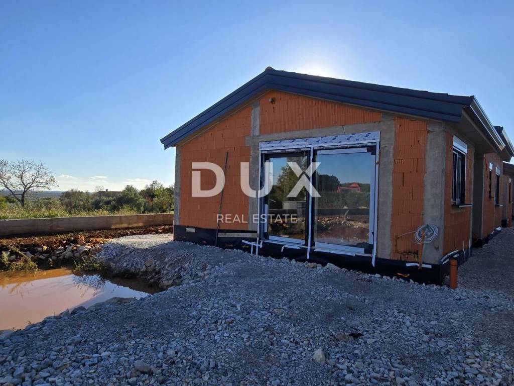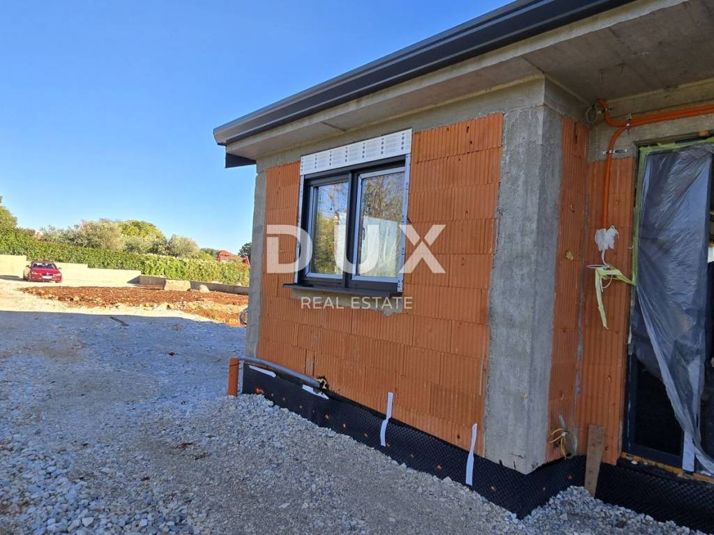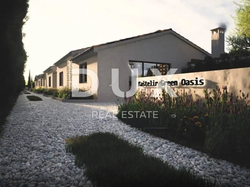 The municipality of Kaštelir is located on the west coast of Istria, in the northeastern hinterland, 13 kilometers from Poreč - the Croatian tourist metropolis. Local residents are mainly engaged in small business and agriculture - they are famous producers of wine, potatoes, olive oil and honey. Many cellars are marked on the maps of the wine roads of the Istrian County. The surroundings are adorned with greenery of vineyards and olive groves and fertile red soil on which hardworking locals grow fruit and vegetables. Located in the quiet and picturesque Kaštelir, close to Poreč and the Adriatic coast, these modern single-storey houses offer the perfect combination of comfort, contemporary design and functionality. Each single-storey house offers a spacious living room with kitchen and dining area full of natural light, three comfortable bedrooms, a bathroom and toilet and an outdoor storage room. The ceilings are high in all rooms and provide the possibility of setting up galleries. They are equipped with underfloor electric heating controlled via Wifi devices and air conditioning with a heating and cooling system that provides a pleasant temperature throughout the year. The outdoor area invites you to relax by the private pool, and several private parking spaces and a charging station for electric cars are also provided. A partial view of the sea further contributes to the feeling of peace and comfort. The house is being sold on a turnkey basis, and construction has already begun! Completion is planned for the second half of 2025. At the request of the future owner, it is possible to build two more swimming pools so that each residential unit has its own. This new building represents an excellent opportunity for anyone looking for an elegant and comfortable home in one of the most desirable locations in Istria.
