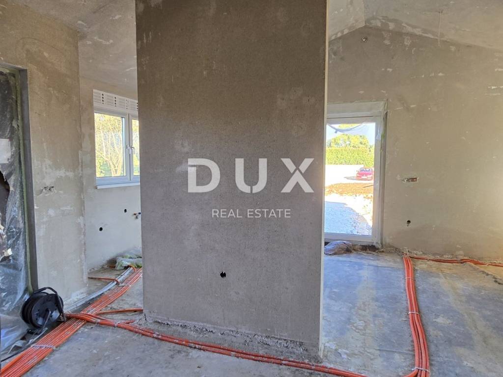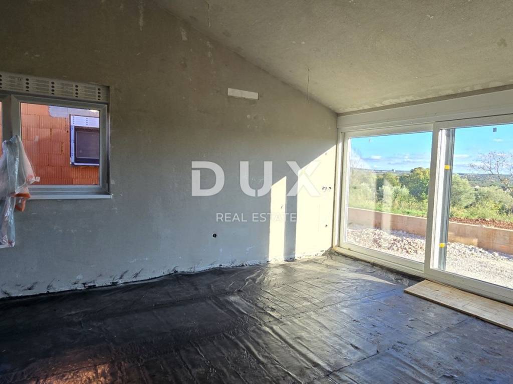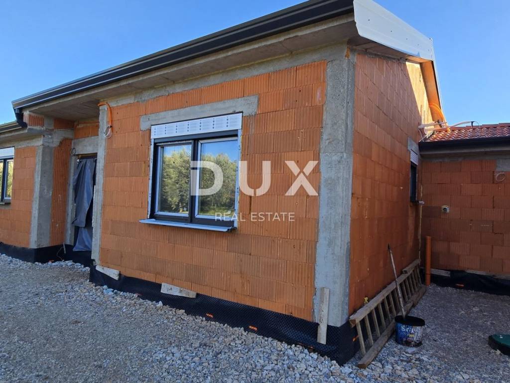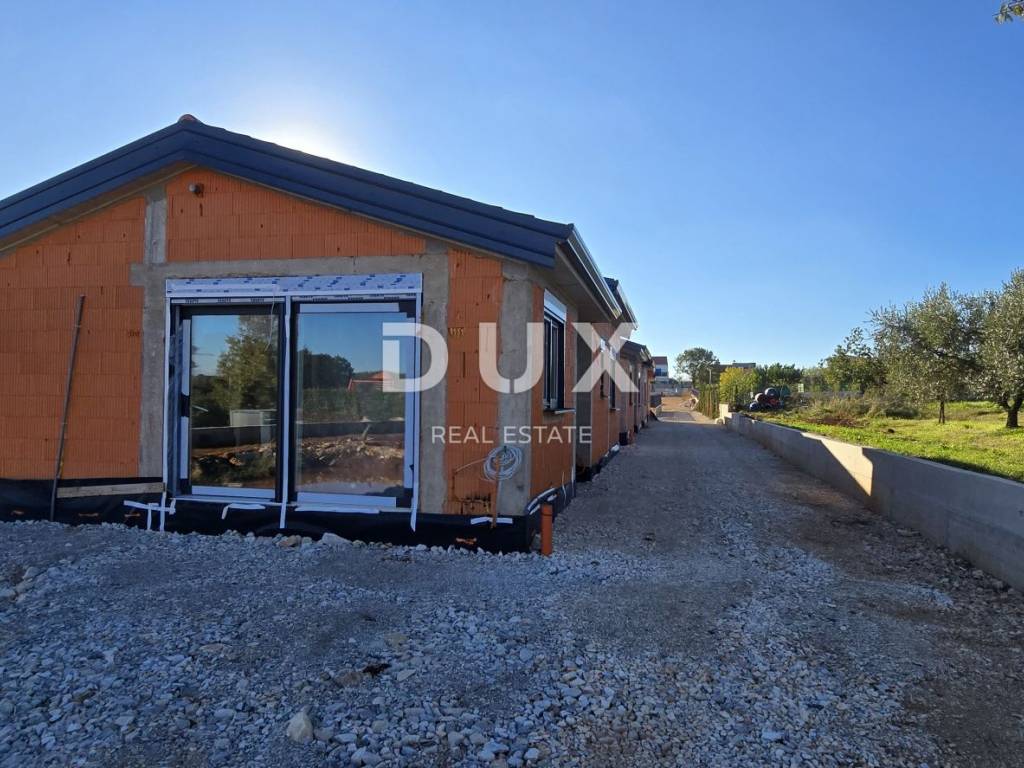 The municipality of Kaštelir is located on the west coast of Istria, in the northeastern hinterland, 13 kilometers from Poreč - the Croatian tourist metropolis. Local residents are mainly engaged in small business and agriculture - they are famous producers of wine, potatoes, olive oil and honey. Many cellars are marked on the maps of the wine roads of the Istrian County. The surroundings are adorned with greenery of vineyards and olive groves and fertile red soil on which hardworking locals grow fruit and vegetables. Located in the quiet and picturesque Kaštelir, close to Poreč and the Adriatic coast, these modern single-storey houses offer the perfect combination of comfort, contemporary design and functionality. Each single-storey house offers a spacious living room with kitchen and dining area full of natural light, three comfortable bedrooms, a bathroom and toilet and an outdoor storage room. The ceilings are high in all rooms and provide the possibility of setting up galleries. They are equipped with underfloor electric heating controlled via Wifi devices and air conditioning with a heating and cooling system that provides a pleasant temperature throughout the year. The outdoor area invites you to relax by the private pool, and several private parking spaces and a charging station for electric cars are also provided. A partial view of the sea further contributes to the feeling of peace and comfort. The house is being sold on a turnkey basis, and construction has already begun! Completion is planned for the second half of 2025. At the request of the future owner, it is possible to build two more swimming pools so that each residential unit has its own. This new building represents an excellent opportunity for anyone looking for an elegant and comfortable home in one of the most desirable locations in Istria.