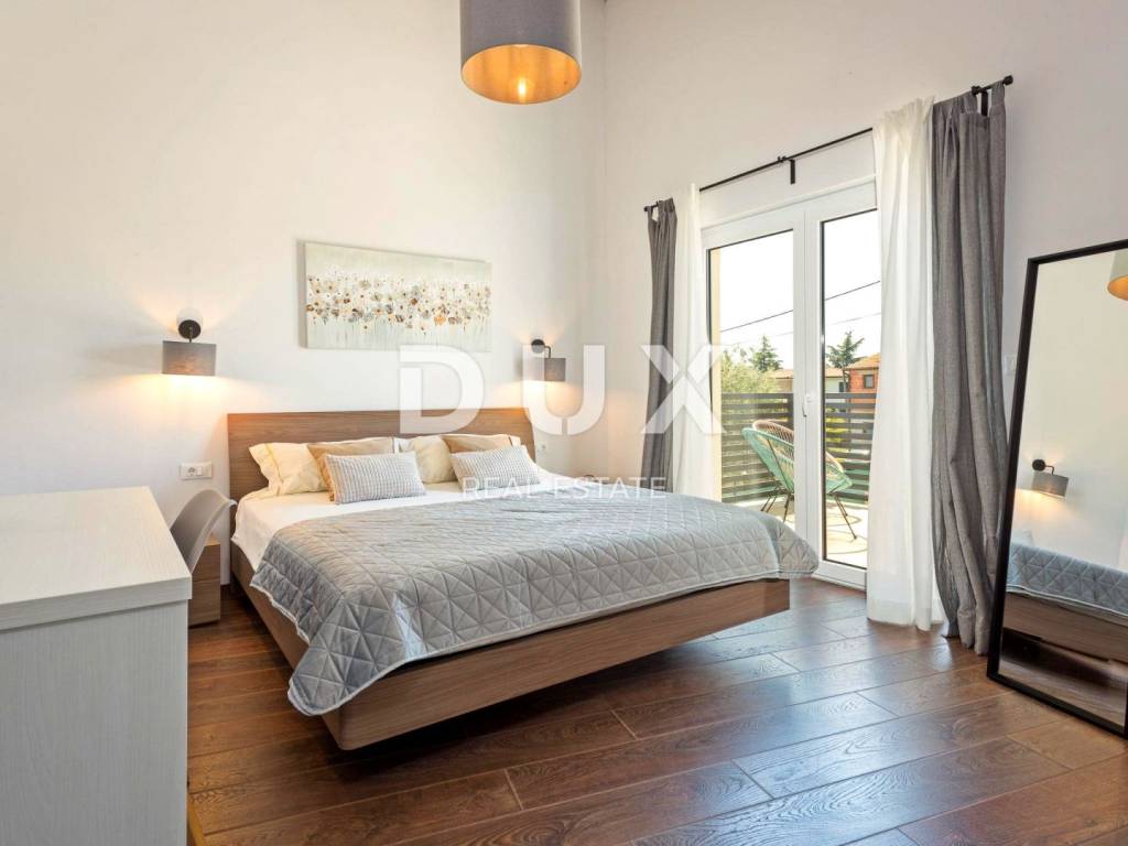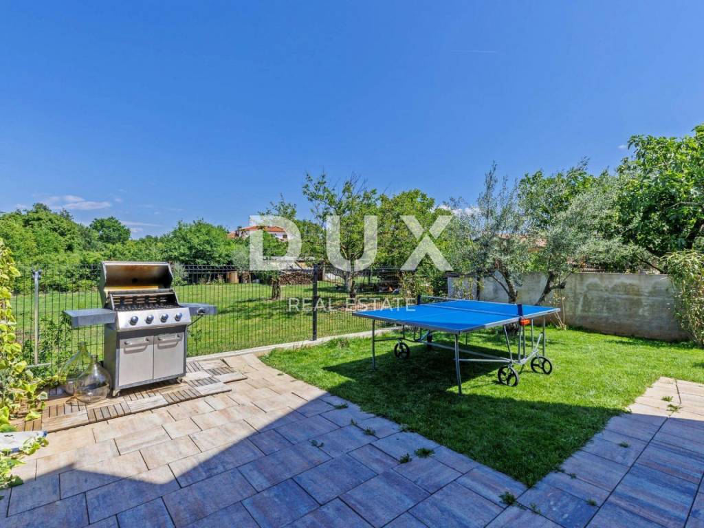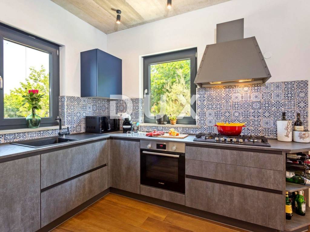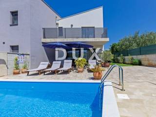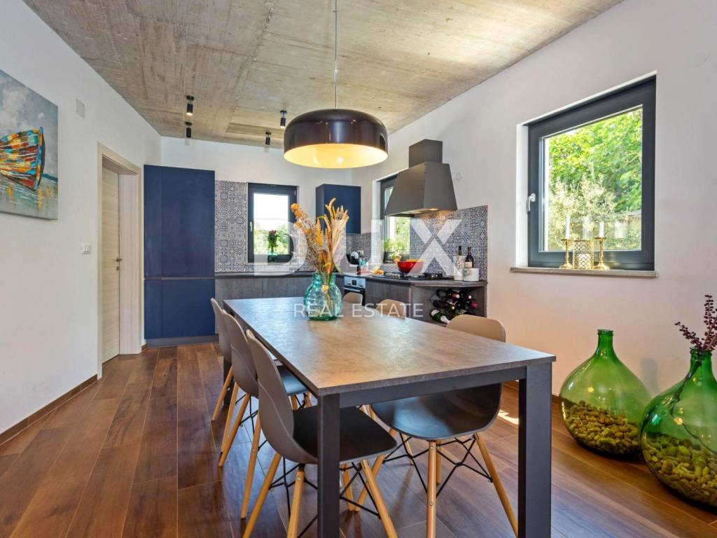 Bathed in a pleasant Mediterranean climate, located in the heart of the western Istrian coast, the ancient town of Poreč and its coastline of preserved natural beauty, landscaped parks, pine and oak groves that reach the sea itself, along which the clear sea, beaches, bays and islands alternate, spreads over an area of 139 km and consists of 58 settlements. With the identity of an urban coastal city, Poreč is a city of culture, sports, entertainment, a city of tourism and true hospitality. One of the most attractive cities of Croatian tourism that uniquely combines the natural beauty of Istria, a rich cultural and historical heritage and the most modern amenities of a top tourist destination. The harmony of the old town core, which is a cultural monument, with one of the most famous Istrian cultural monuments, the Euphrasian Basilica, which is on the UNESCO World Heritage List, and the most well-maintained and best-equipped tourist settlements on the Adriatic, forms a mosaic of unforgettable experiences. Poreč is also a city that is much more than a summer destination of sun and sea. Poreč is a city tailored to the needs of people. A city in which there is a constant impulse to improve living conditions and make progress in various spheres greater. A city that is a pleasant, safe and well-maintained place to live where everyone can find their place, a city without surtaxes with high social sensitivity for all generations. Not far from the city of Poreč, there is a house with a swimming pool for sale. It is located in a quiet neighborhood, surrounded by nature, family houses and holiday homes, offering a perfect balance of rural surroundings and proximity to the sea and urban amenities. The house, with its architecture, fits into the settlement and landscape in terms of form and color, creating a synergy of natural surroundings and modern design, and the quality of construction guarantees long-term satisfaction and quality of living. It is defined as one residential unit whose surface is distributed over two tastefully decorated floors of a functional floor plan. The ground floor consists of an open-concept space that unites the kitchen, dining room and living room with access to a covered terrace, guest toilet, utility room and storage room, while the first floor consists of three bedrooms, two bathrooms and a terrace. The yard is landscaped and fenced, and the perfect harmony is complemented by a swimming pool with a sunbathing area. The excellent location and spatial organization of the interior and exterior of this property provide an opportunity for a comfortable family life or investment in a tourist rental business.