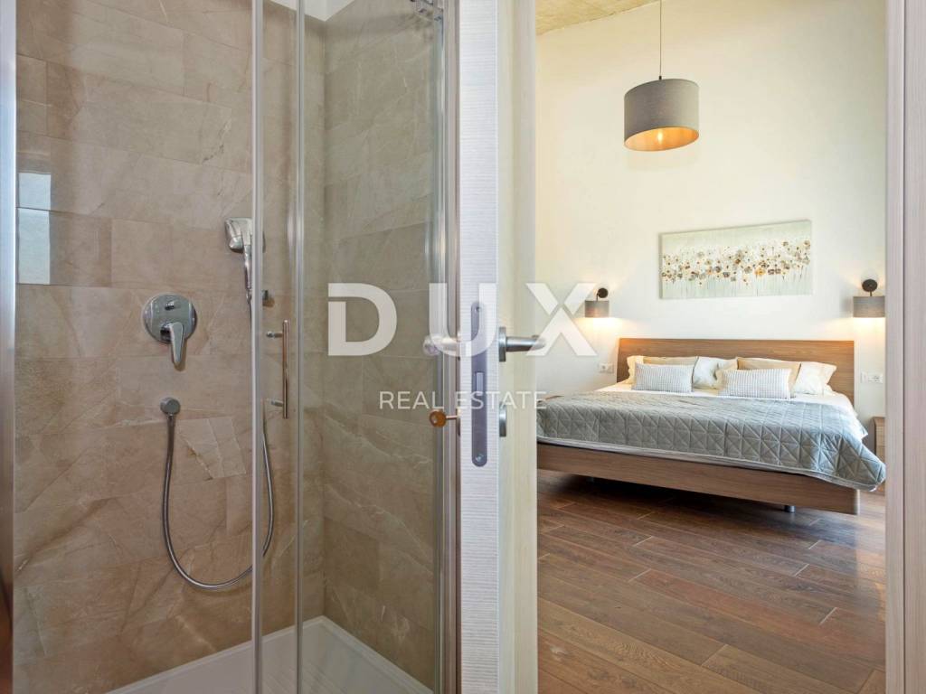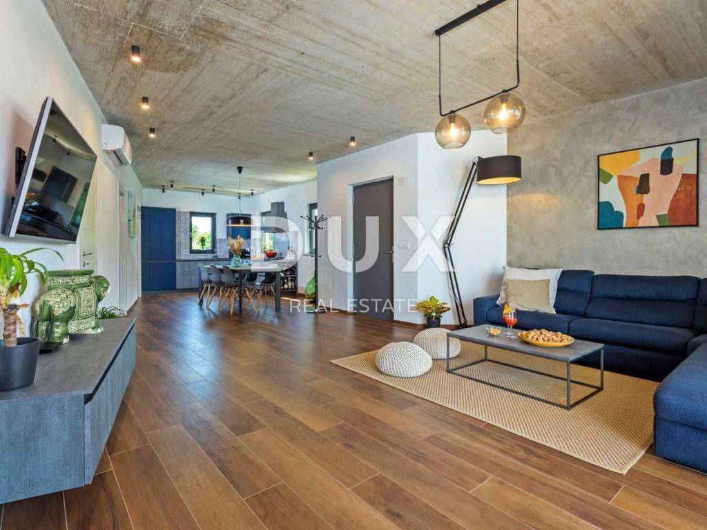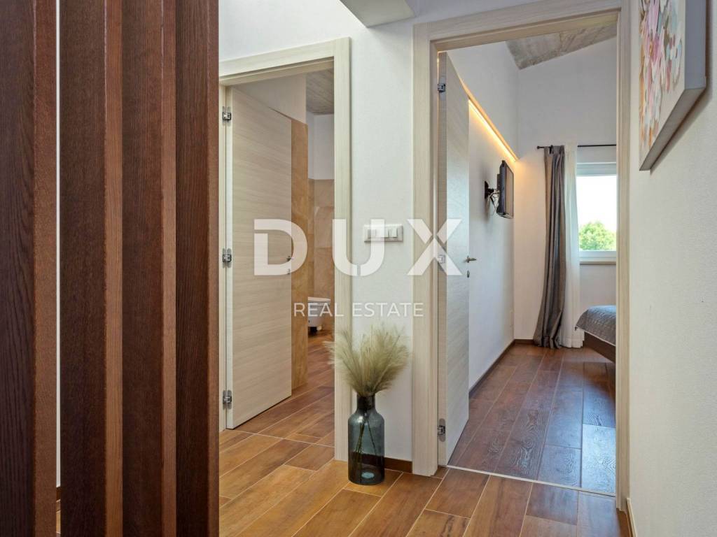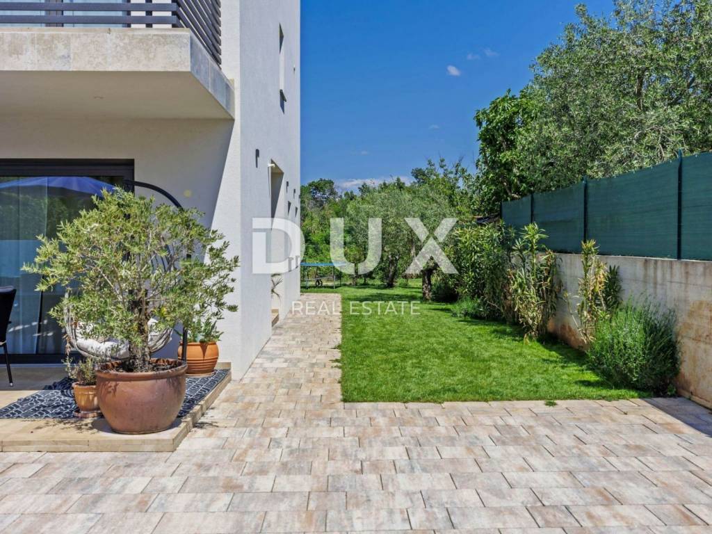 Bathed in a pleasant Mediterranean climate, located in the heart of the western Istrian coast, the ancient town of Poreč and its coastline of preserved natural beauty, landscaped parks, pine and oak groves that reach the sea itself, along which the clear sea, beaches, bays and islands alternate, spreads over an area of 139 km and consists of 58 settlements. With the identity of an urban coastal city, Poreč is a city of culture, sports, entertainment, a city of tourism and true hospitality. One of the most attractive cities of Croatian tourism that uniquely combines the natural beauty of Istria, a rich cultural and historical heritage and the most modern amenities of a top tourist destination. The harmony of the old town core, which is a cultural monument, with one of the most famous Istrian cultural monuments, the Euphrasian Basilica, which is on the UNESCO World Heritage List, and the most well-maintained and best-equipped tourist settlements on the Adriatic, forms a mosaic of unforgettable experiences. Poreč is also a city that is much more than a summer destination of sun and sea. Poreč is a city tailored to the needs of people. A city in which there is a constant impulse to improve living conditions and make progress in various spheres greater. A city that is a pleasant, safe and well-maintained place to live where everyone can find their place, a city without surtaxes with high social sensitivity for all generations. Not far from the city of Poreč, there is a house with a swimming pool for sale. It is located in a quiet neighborhood, surrounded by nature, family houses and holiday homes, offering a perfect balance of rural surroundings and proximity to the sea and urban amenities. The house, with its architecture, fits into the settlement and landscape in terms of form and color, creating a synergy of natural surroundings and modern design, and the quality of construction guarantees long-term satisfaction and quality of living. It is defined as one residential unit whose surface is distributed over two tastefully decorated floors of a functional floor plan. The ground floor consists of an open-concept space that unites the kitchen, dining room and living room with access to a covered terrace, guest toilet, utility room and storage room, while the first floor consists of three bedrooms, two bathrooms and a terrace. The yard is landscaped and fenced, and the perfect harmony is complemented by a swimming pool with a sunbathing area. The excellent location and spatial organization of the interior and exterior of this property provide an opportunity for a comfortable family life or investment in a tourist rental business.