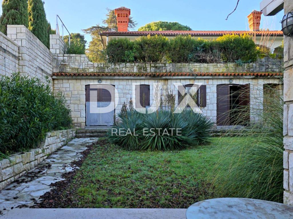 Umag is an attractive Istrian town located on the far west of the Croatian coast and is well connected to other European countries. Umag, a town of tourism and sports, hides a rich history that can be felt while walking along the beautiful streets and promenades along the sea, and the old buildings combined with the modernly decorated parts of the coast are a great combination. The town and its surroundings are adorned with an extremely mild Mediterranean climate, a large number of sunny days and exceptionally clean sea. Umag is a town with a very branched and interesting coast on which there are various beaches. From sandy and pebble, through stone and concrete to rocky beaches. In the hinterland there are beautiful hilly places-fortresses with incredible views and an amazing past and many agrotourism with indigenous delicacies and friendly hosts. Umag consists of 23 settlements. Not far from the town of Umag, there is a villa by the sea for sale. In addition to the exceptional location with direct access to the stone beach, views of the magical sunsets and the open sea in the distance, the property is characterized by the quality of construction, which guarantees long-term satisfaction and quality of living. The villa of timeless charm and architecture blends into the settlement and landscape in terms of form and color. It consists of two residential units and extends over one floor. One residential unit consists of two bedrooms, a bathroom, a kitchen, a dining room and a living room with access to a covered terrace, while the other residential unit consists of one bedroom, a bathroom and an open-concept space that unites the kitchen, dining room and living room with access to a covered terrace. The spacious garden is fenced and abundant with greenery and Mediterranean plants and vegetation. The exceptional location, structure and comfort make this property an ideal opportunity for a peaceful family life as well as for an investment for the purpose of tourist rental.