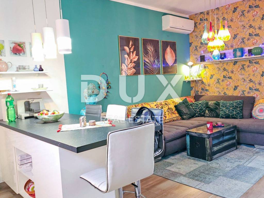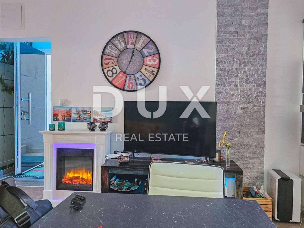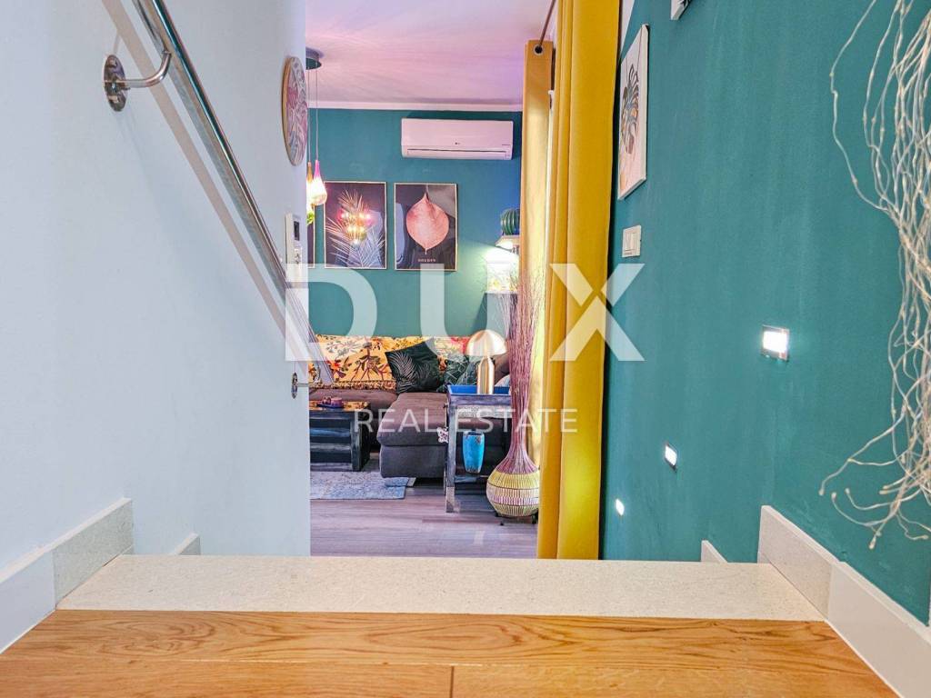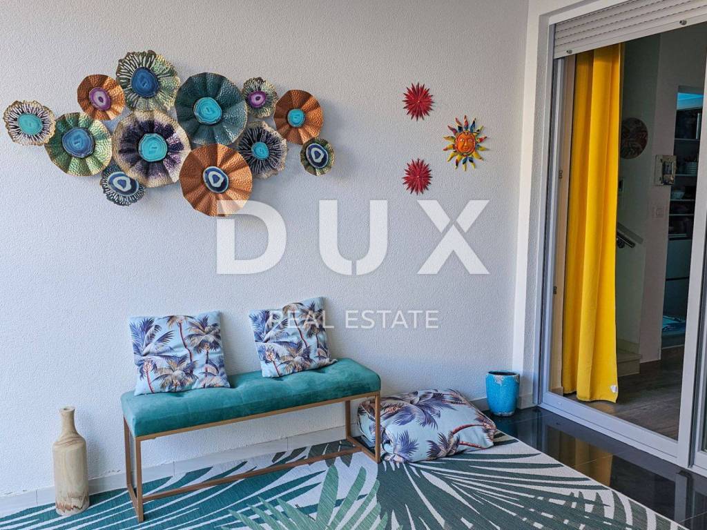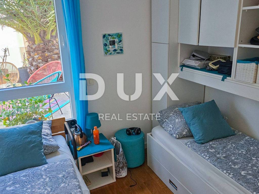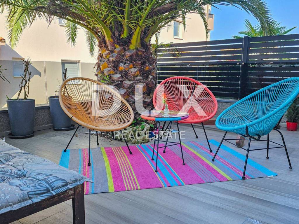 OPPORTUNITY ONLY 150m FROM THE SEA! We present a beautifully decorated apartment on the ground floor of an apartment building built in 2013. The apartment is located in a great location, not far from the promenade and the center of Njivica. It consists of an entrance area with storage that leads to an open space where there is a kitchen, dining room and living room. From the living room there is access to the closed loggia and garden. The yard is designed in two levels, it is very nicely decorated, and in addition to rich greenery, there is also an outdoor covered shower and barbecue. There are two bedrooms and a bathroom on the mezzanine floor. The apartment is equipped with air conditioning, quality PVC joinery and electric blinds. It is sold fully furnished. The great advantage of the apartment is the parking space in the property as well as its own entrance!! The documentation is in order. The deadline for moving in is now!
