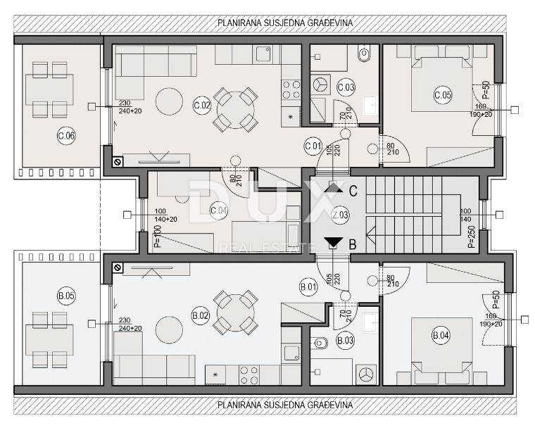 This multi-apartment building is located just a few minutes from the city center, in an extremely frequent and sought-after location. Surrounded by other residential buildings and 100m from the main road, in a quiet street, it offers peace and privacy. Close to the city, city beaches, public transport, fitness halls, markets, schools and kindergartens. In the new project, a 2 bedroom apartment with a balcony is for sale! The apartment will be equipped with high-quality ceramics and sanitary ware, air conditioning and underfloor heating in the bathroom (it is possible to install underfloor heating in the entire apartment) Apartment C includes: hallway 2.46 m2 kitchen and living room 21.12 m2 bathroom 4.82 m2 room 1 10.31 m2 room 2 12.05 m2 Area: 50.76 m2 balcony 8.40 m2 Total area of the apartment: 59.16 m2 parking P3 12.50 m2 storage room S03 3.68 m2 For all we are at your disposal for other questions!