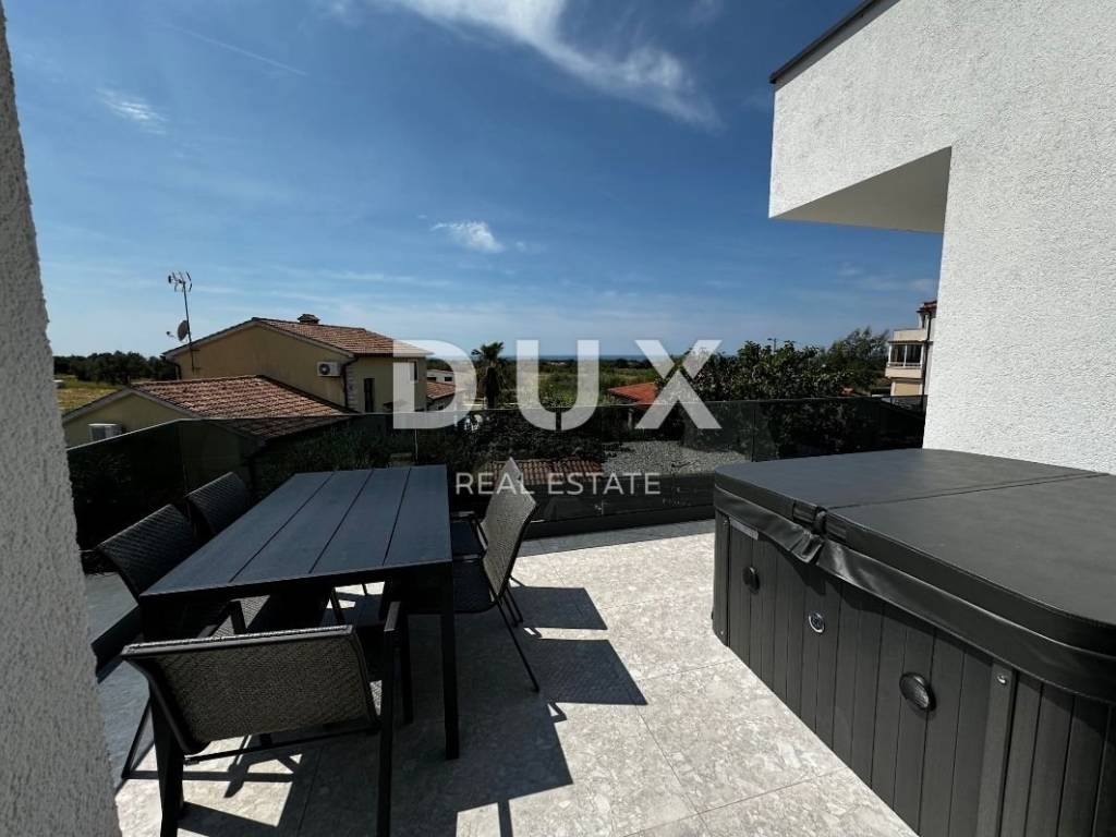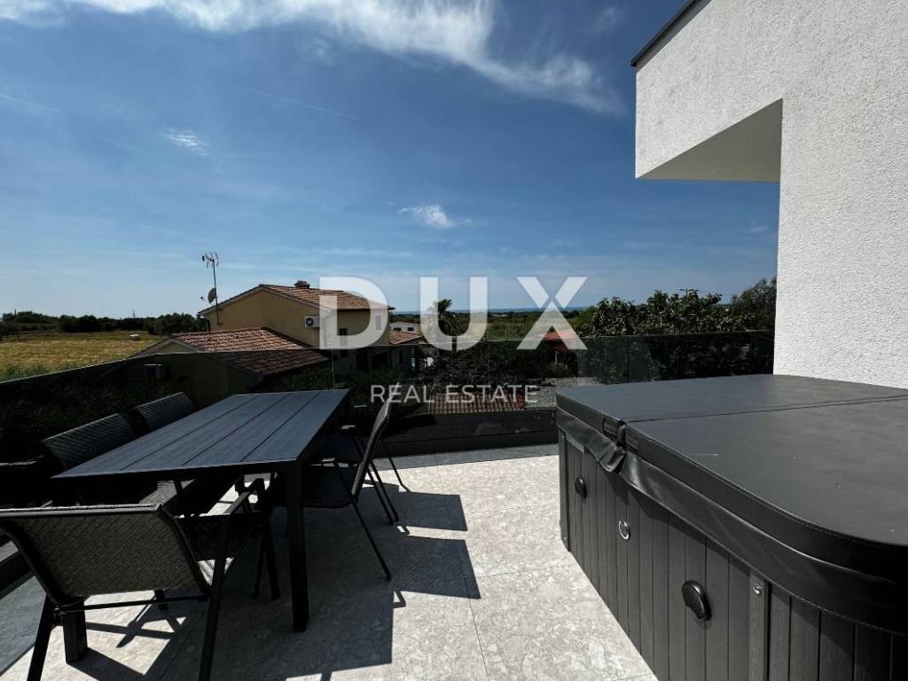 Poreč is located on the west coast of the Istrian peninsula. Due to the Mediterranean climate, natural beauty and preserved cultural heritage, it is an ideal place to stay all year round. The city includes 53 surrounding settlements where there are modern villas with swimming pools and apartment complexes, while in the very center you can find a variety of apartments and flats for sale, from rustic stone properties to luxurious new buildings. In the immediate vicinity of the city of Poreč is this modern newly built building with luxury apartments with a view of the sea! The apartment is located on the first floor of a building with only four residential units. The area of the apartment is 97.06 m2 and consists of an entrance hall, three spacious bedrooms, two bathrooms and an additional toilet for guests. The living room, dining room and kitchen are designed according to the open space concept and provide spaciousness complemented by the exit to the terrace, the size of which is 14.95 m2. The entire living area has access to a covered terrace with a jacuzzi and a panoramic view of the sea. The apartment is built of very high quality materials. The floors are covered with stone, ceramic or wood depending on the purpose. The external carpentry is aluminum, three-layer glazed with Thermopan glass, while the internal carpentry is wooden. Heating and cooling is provided by multi-split inverter air conditioners. There is a covered parking lot in front of the building, and each apartment has two parking spaces. The property is subject to VAT. This property is an ideal opportunity for family life as well as for tourist purposes.