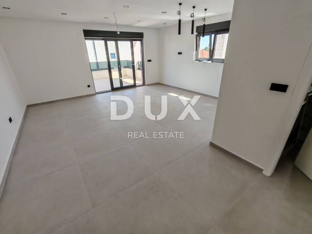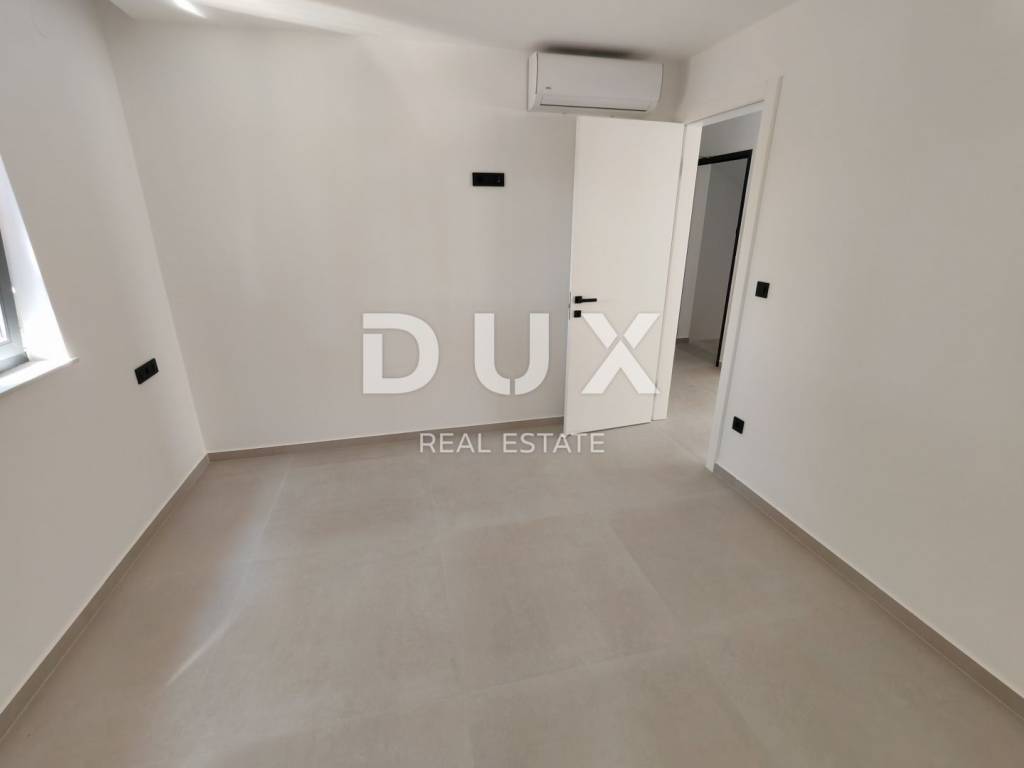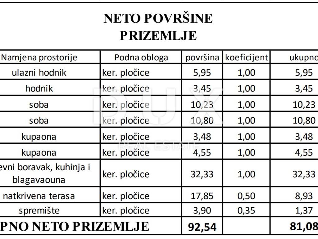 A luxurious apartment on the ground floor is for sale in one of the most sought-after locations on Vir, just 160 meters from the beautiful Jadro beach. In a quiet cul-de-sac, located in the very heart of Vir, this new building offers an extraordinary opportunity for those looking for the perfect combination of comfort and luxury. The apartment of 81.08 m2 has been carefully designed to provide maximum comfort and functionality. It consists of a spacious hallway, two elegant bedrooms, one of which has a private bathroom, additional bathrooms, a modern kitchen connected to the dining room and living room, and a spacious terrace ideal for relaxation. Special attention is paid to the quality of construction and finishing details. There are premium anthracite plastic carpentry with three-layer glass, electric blinds, mosquito nets, as well as premium aluminum entrance doors to the building. The facade is insulated with 10 cm Styrofoam, while the terraces are covered with elegant travertine stone. A black fence made of two-layer tempered glass, handmade interior joinery, high-quality ceramics measuring 90 90 cm throughout the apartment, and luxurious bathroom elements from the brands Geberit, Grohe and Aquaestil ensure a high standard of living. Additional comfort includes electric floor heating in the bathrooms, air conditioners in the bedrooms and living room, anti-burglary and fire-resistant entrance doors to the apartments, as well as a video intercom. Knauf ceilings with built-in LED lighting, both working and ambient, further emphasize the sophistication of the space, while LED strips on the terraces create a pleasant atmosphere for evening get-togethers. The apartment also has a practical storage room under the stairs, equipped for a washing machine, and one parking space. This unique opportunity is exempt from real estate tax, and the completion of the construction of buildings A and B is planned for the beginning of 2025, while the completion of building C is expected in the fall of the same year. Don't miss the opportunity! Contact us and arrange a viewing of this extraordinary apartment that can become your new home or an ideal vacation spot.