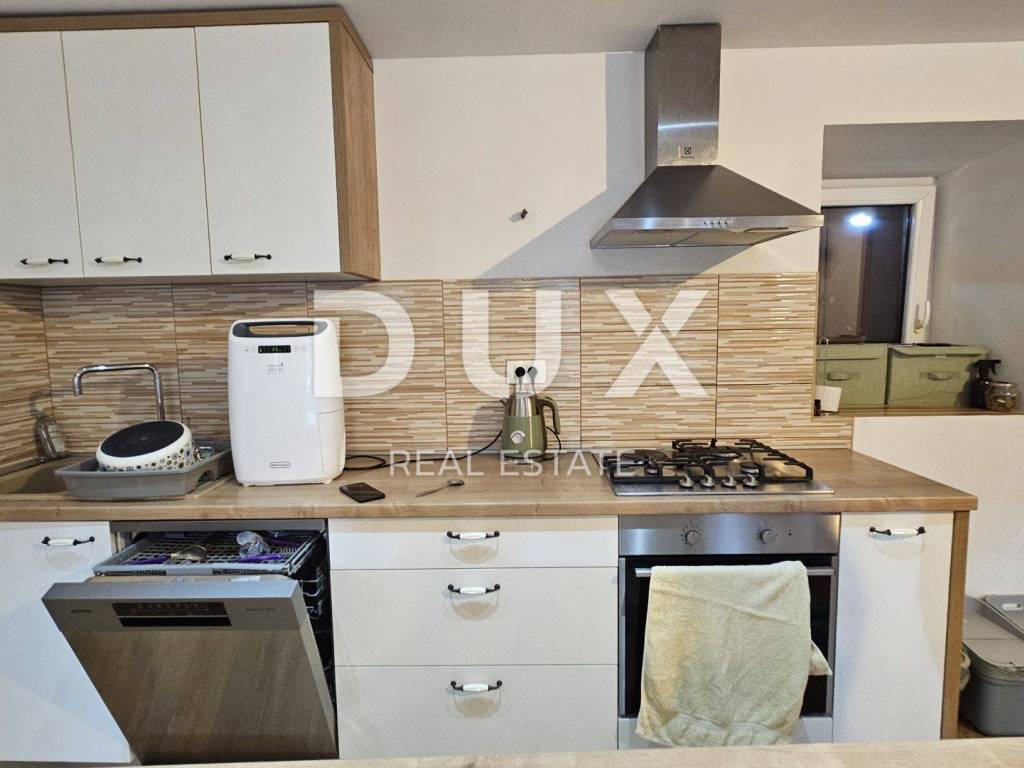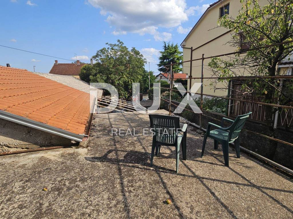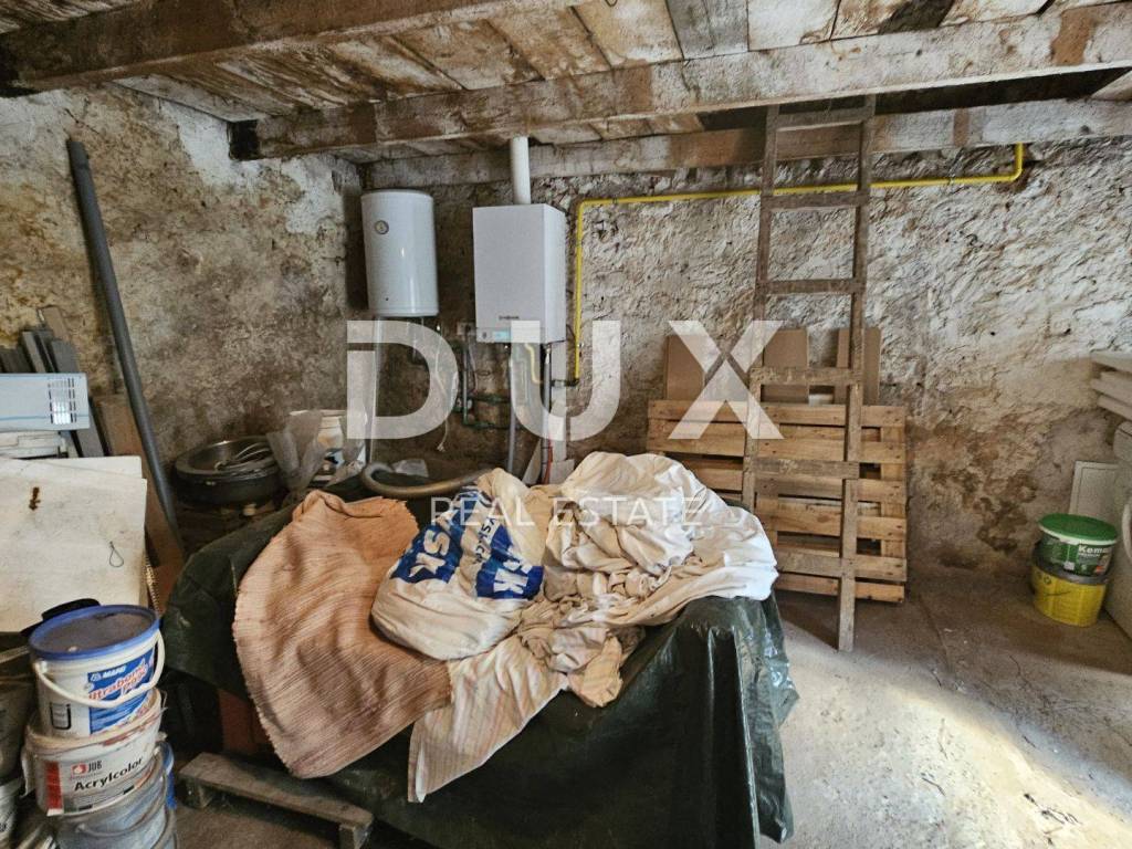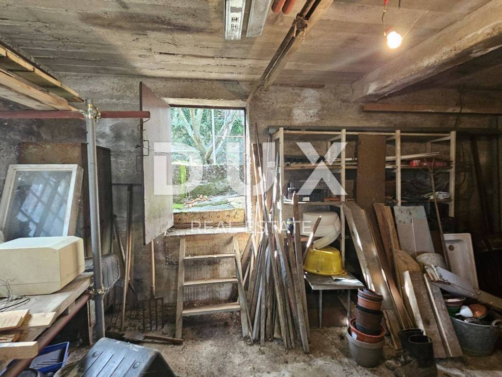 We are selling a very interesting property in the very center of Čavli. It consists of several parts, which together form an interesting whole. The first part, a house consisting of one fully furnished and equipped 2-bedroom apartment, with a total square footage of 89.34 m2. The apartment consists of a kitchen with dining room and living room, two bedrooms and a bathroom. Above the apartment itself there is also an attic part, of the same square footage, up to a maximum height of 1.06m. Central, storey gas heating is used for heating. The second part is the house that is connected to the first house. That part is unorganized, and a garage with auxiliary rooms is attached to it. The total square footage of the unfurnished part is approx. 86.99m2. The garage part with accompanying rooms is approx. 49.34m2. There is also an auxiliary building in the garden which is currently used as a tool room. Behind the garage on a higher level there is a garden and a terrace. Parking for several cars. A very interesting property full of potential.
