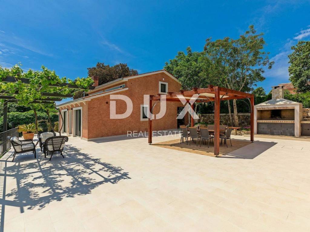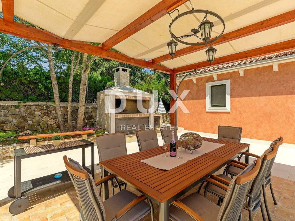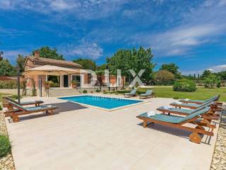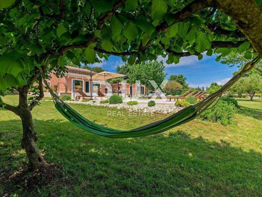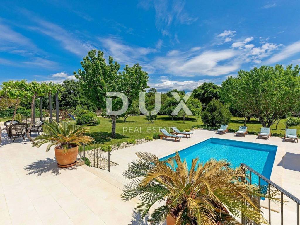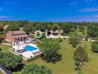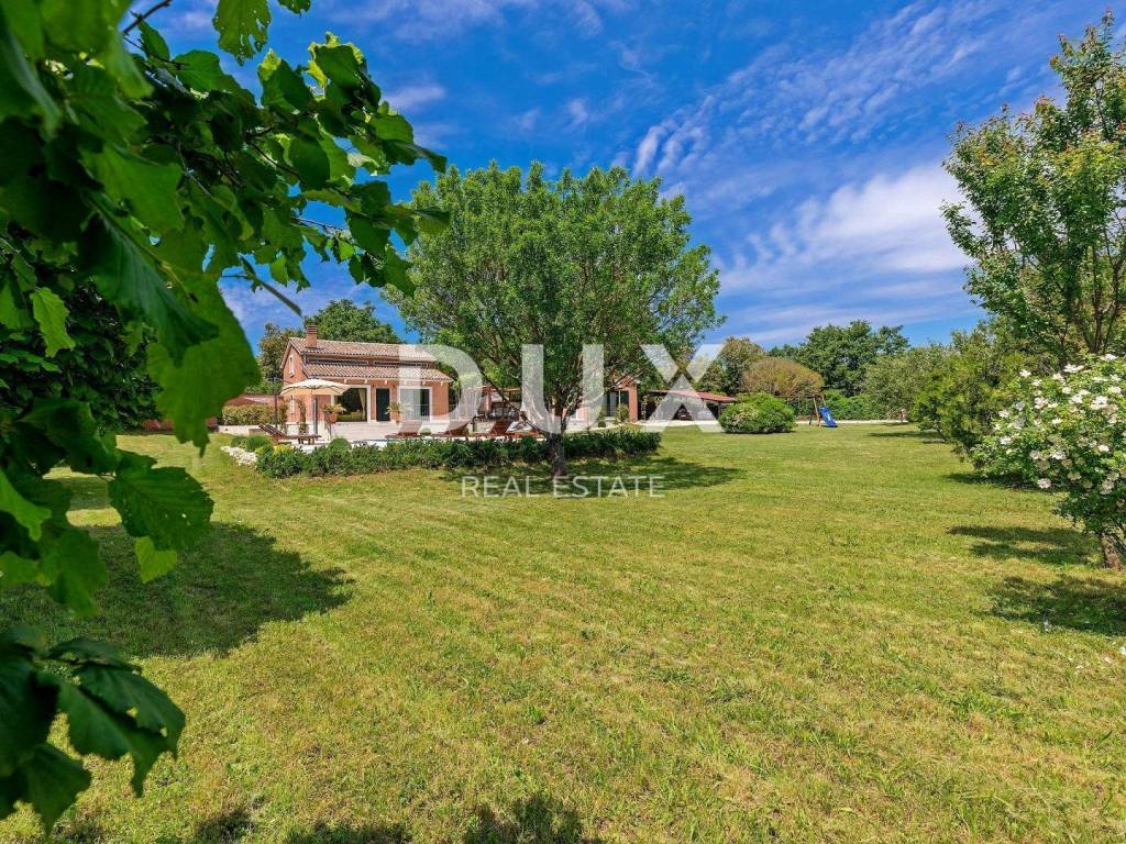 The most attractive picturesque Istrian town of Rovinj, with its old town center under UNESCO protection, is an eternal inspiration for romantics and artists and one of the most developed tourist destinations in Croatia. It is located on the west coast of Istria and is adorned by a distinctly indented archipelago with as many as 14 islets and 6 rocks along 67 kilometers of coastline, which is a protected natural heritage. A beautiful indented coast, a specific mild Mediterranean microclimate, an excellent gastronomic offer, year-round cultural events and nice and friendly hosts make this small town magical. Surrounded by greenery in a gentle neighborhood in the suburbs of magical Rovinj, an oasis of comfort and peace near the beach is for sale. The harmonious property consists of a main house, a guest house and a swimming pool, and in addition to the microlocation, the property is also distinguished by the quality of its construction, which guarantees long-term satisfaction and quality of living. Houses of timeless design fit in shape and color into the village and the landscape, and each house is conceived as a tastefully decorated and well-equipped residential unit. The main house extends over two floors. The ground floor consists of an open concept space that unites the kitchen, dining room and living room, a guest toilet and two bedrooms with their own bathrooms. The loft consists of a gallery space and a bedroom with its own bathroom. The guest house extends over one floor and consists of a living room with a kitchen, a bedroom and a bathroom. Between the houses there is a summer dining room covered with a pergola and an open fireplace, and the perfect harmony is rounded off by a 32 m saltwater swimming pool with a sun deck. The spacious garden is completely fenced, equipped with automatic irrigation and enriched with olives, fruit trees and various indigenous herbs and plants. This rarity on the market is an ideal opportunity for a comfortable family life as well as an investment for the purpose of an already established tourist rental. Dear clients, the agency commission is charged in accordance with the General Business Conditions: www.dux-nekretnine.hr/opci-uvjeti-poslovanja