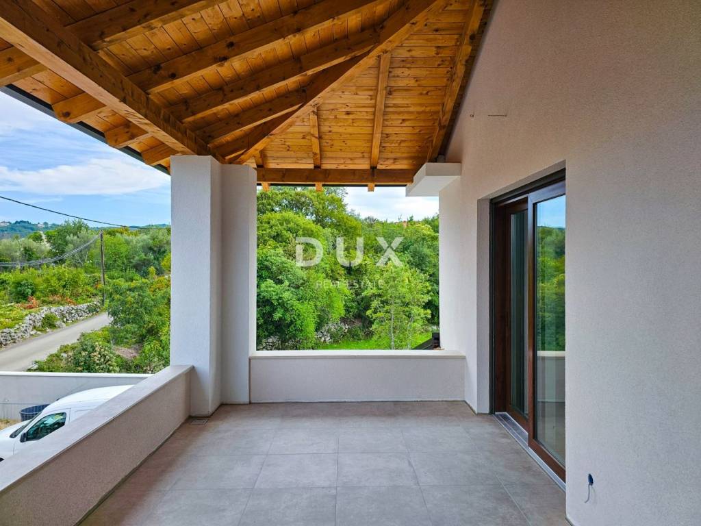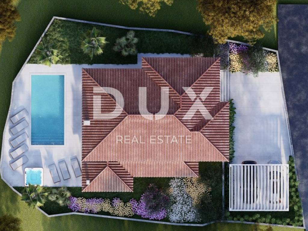In a quiet environment of family houses and nature, in the vicinity of Dobrinj on the island of Krk, there is a new detached house waiting for its new owners. This property offers the perfect blend of luxury and comfort, ideal for anyone looking for a peaceful retreat close to the sea. The house is spread over a plot of 651 m and includes two floors with a total of 251 m of living space. On the ground floor there is an entrance area, a laundry room, a toilet, a bedroom with its own bathroom, a modern kitchen with a dining room and a spacious living room that leads to a covered terrace and a landscaped garden. On the first floor, there are three spacious bedrooms, each with its own wardrobe and bathroom, while two rooms share a common terrace with a beautiful view of the sea. The house is built of the highest quality materials, with floor coverings in a combination of ceramics and vinyl, top-quality sanitary ware, PVC carpentry, underfloor heating with a heat pump, and an air-conditioned heating and cooling system. There is also preparation for a sauna and a jacuzzi, so that your comfort is complete. The exterior design includes Mediterranean vegetation that ensures privacy, a fenced garden with a space for relaxation, a summer kitchen, a heated swimming pool and two covered parking spaces. The location is extremely quiet, and only 2,000 m separates you from beautiful beaches, making this property an ideal place for living or vacationing. The property is currently under construction, and the completion of the works and occupancy are planned by the summer of 2025. Opportunity to become the owner of this beautiful house on the island of Krk!! *** Dear clients, the agency commission is charged in accordance with the General Terms and Conditions. https://www.dux-nekretnine.hr/opci-uvjeti-poslovanja